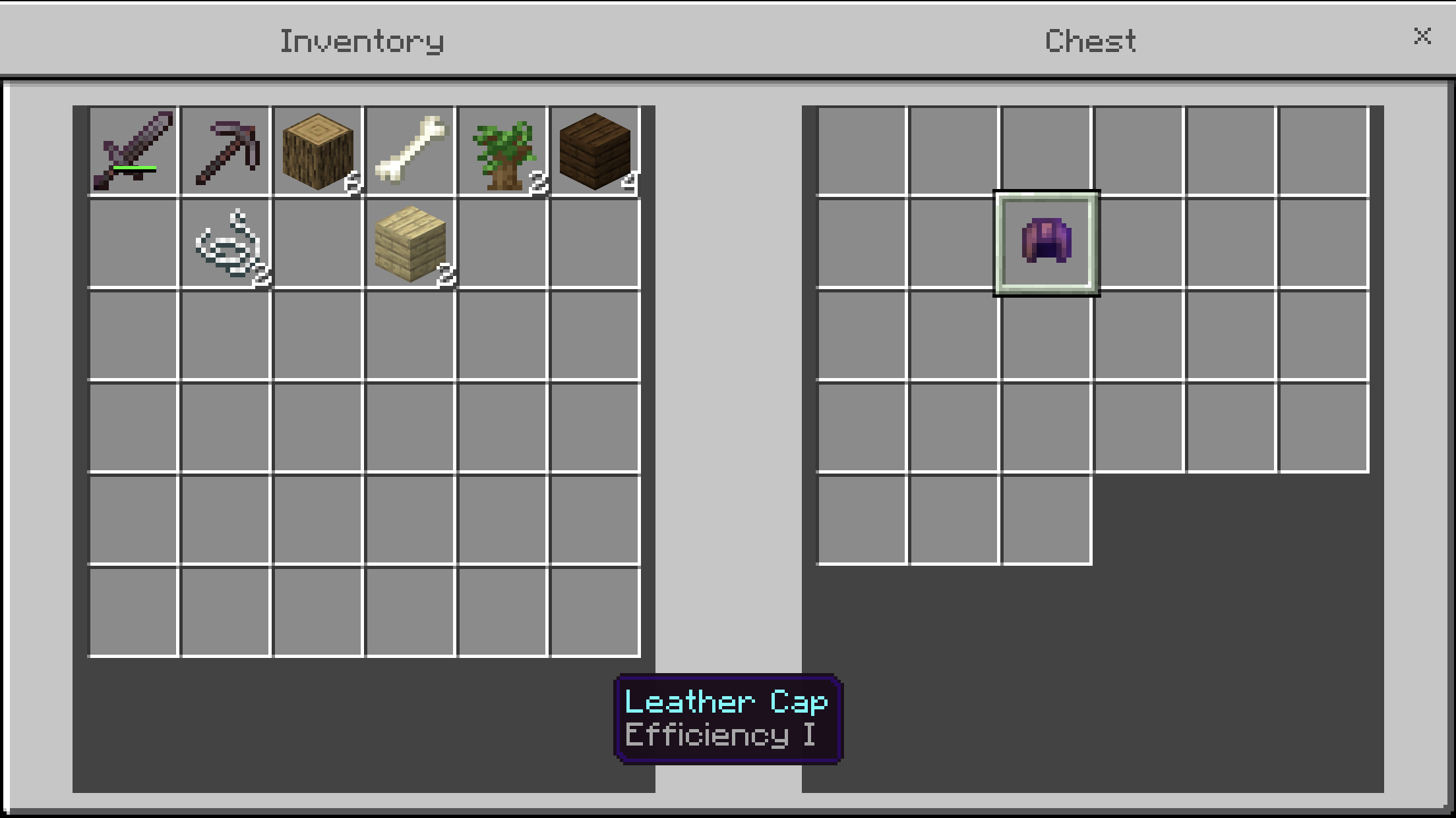 I went into a woodland mansion and I found a leather helmet in the chest in the tree room that was enchanted with efficiency one instead of an iron axe with efficiency one.