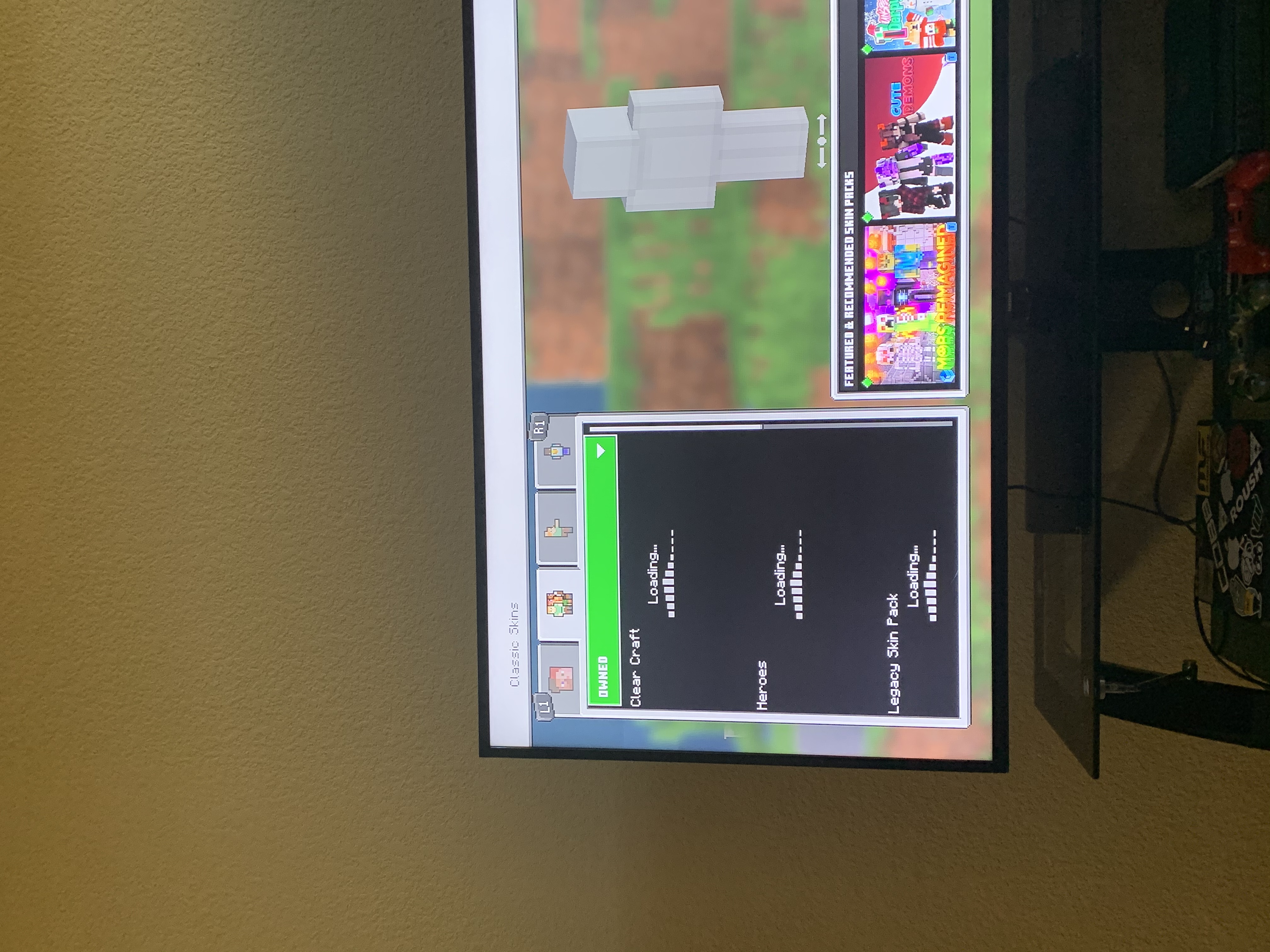 Every time I wanna change my skin From the default Steve it just stays loading forever. Stays loading my purchased skins forever. Can't change skin