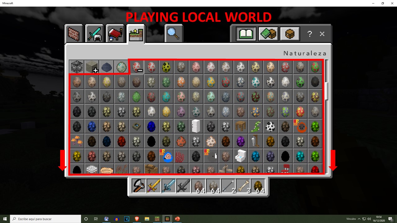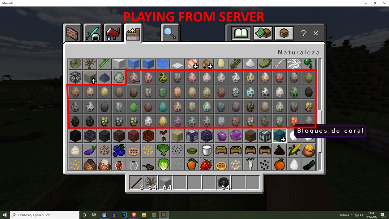 I have a server with several Mods. When I play in the server world, in creative mode, the game does not show the eggs of the creatures of the Mods (Both Windows and Android). But when I copy the whole world and paste it to use locally (on Windows) then the game does show me all the creature eggs from the Mods. I attach images. It's the bedrock server's problem to manage mod creature eggs.