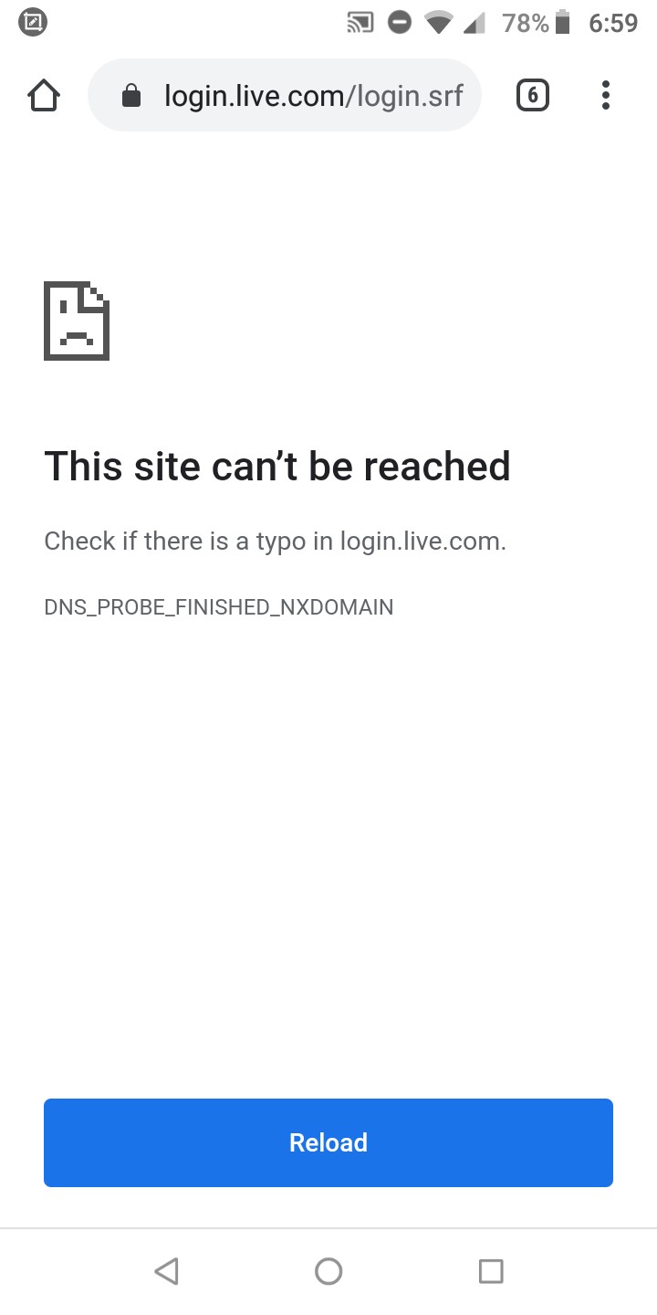 It won't let me login to on login.live.com, it says 'This site can't be reached'. I reloaded it many times and it still won't let me login