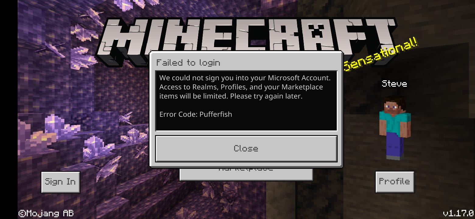 the problem is that it does not allow to start its microsoft section, something comes out of a puffer fish problem and does not allow people to start section and play with their friends