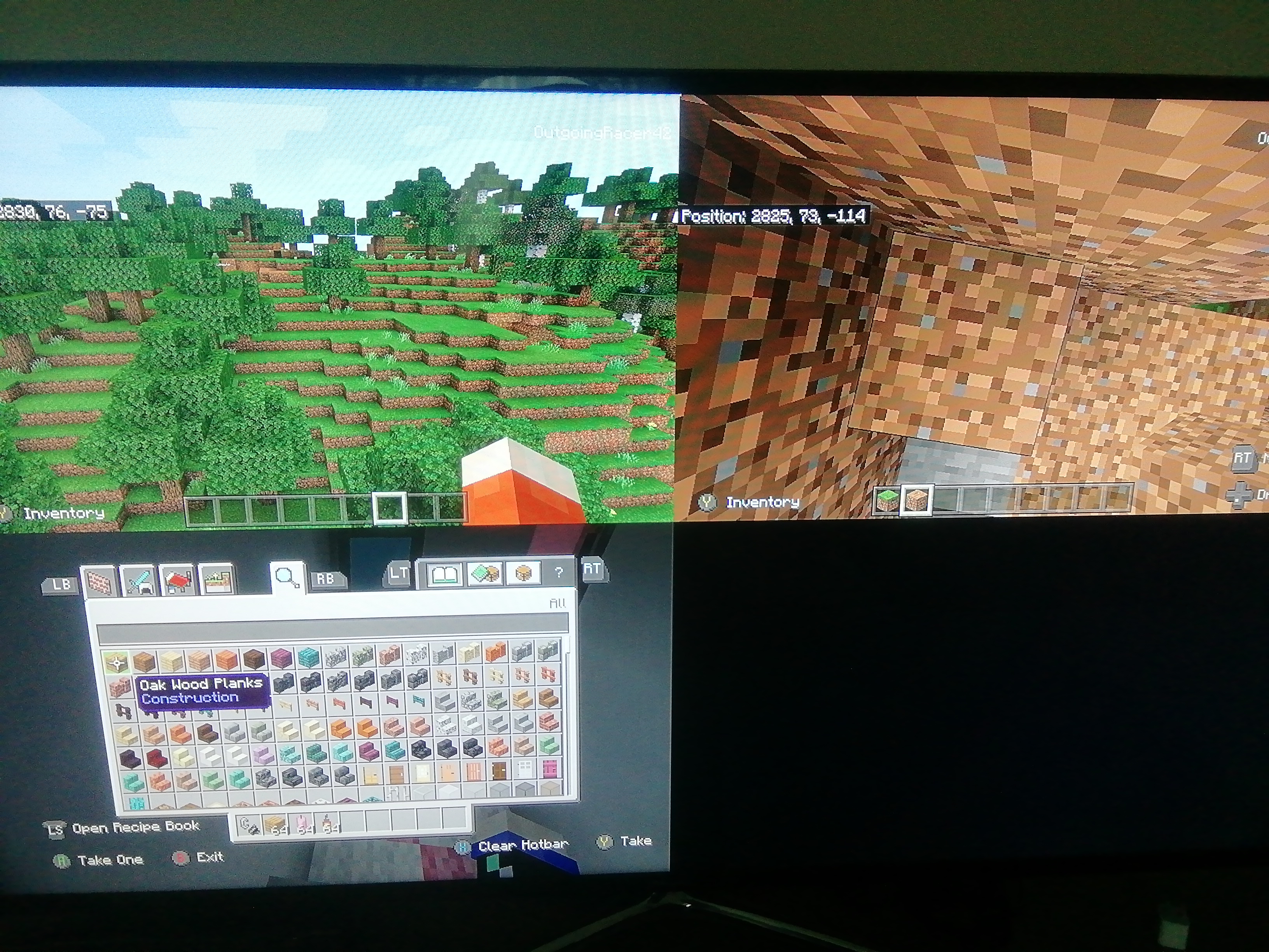 this is a glitch/bug with the plus sign that appears when you're playing. Most of the time, I play with friends on my Xbox one local multi-player. Whenever someone enters a UI (example: chests, creative inventory) the plus sign for the other players dissapears. this has been an issue for multiple months now but I couldn't submit a report. As you can see with the pictures attached, whenever player 3 (lower screen) enters anything, the 2 upper screens for Player 1 and 2 won't have that plus sign. Please fix this.