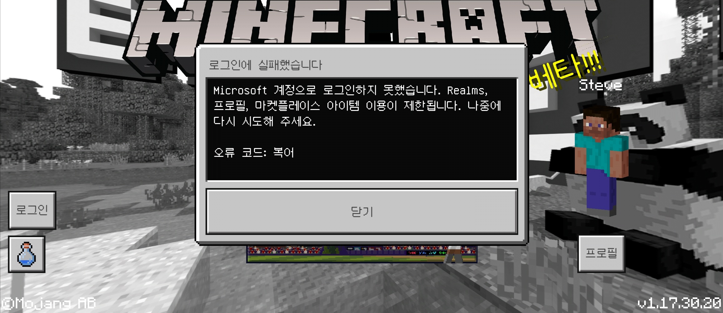 After the mobile Minecraft beta 1.17.20.30 version Korean update, I can't log in (error code: blowfish) and my map Not opens. Please fix it quickly / I am from Korea and live in Korea.