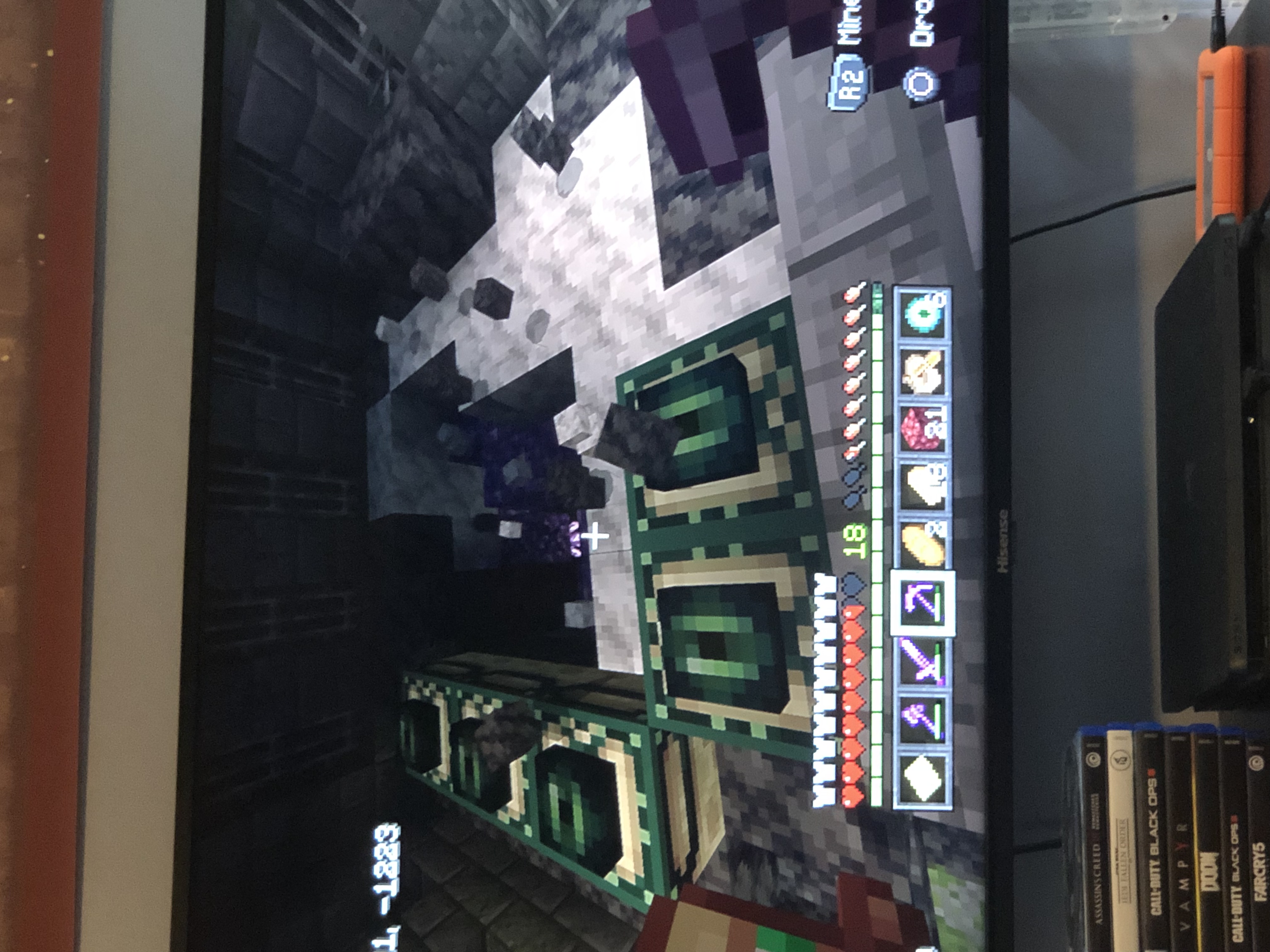 The end portal spawned in the dungeon with only 5 of the portal blocks present. The rest were covered/replaced by blocks from the new cave biome with the amethyst blocks. Making it impossible to access the end from this portal. Something in the code probably doesn't prioritize the end /dungeon blocks over the spawn of the new cave's blocks. Please look into and solve as I am stuck and con not enter the end in this world. Thank you and have a great day.