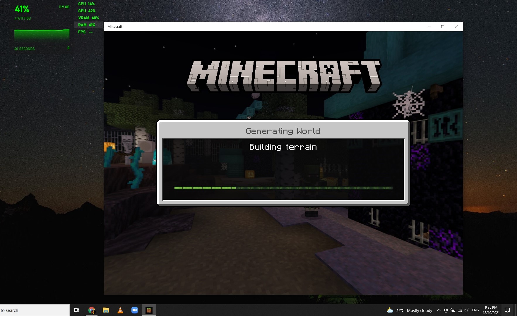 However, if i play other map (which was not a copy my main world) or created new world, the RAM usage is normal and it will load/generate world instantly (picture with 41% RAM usage).