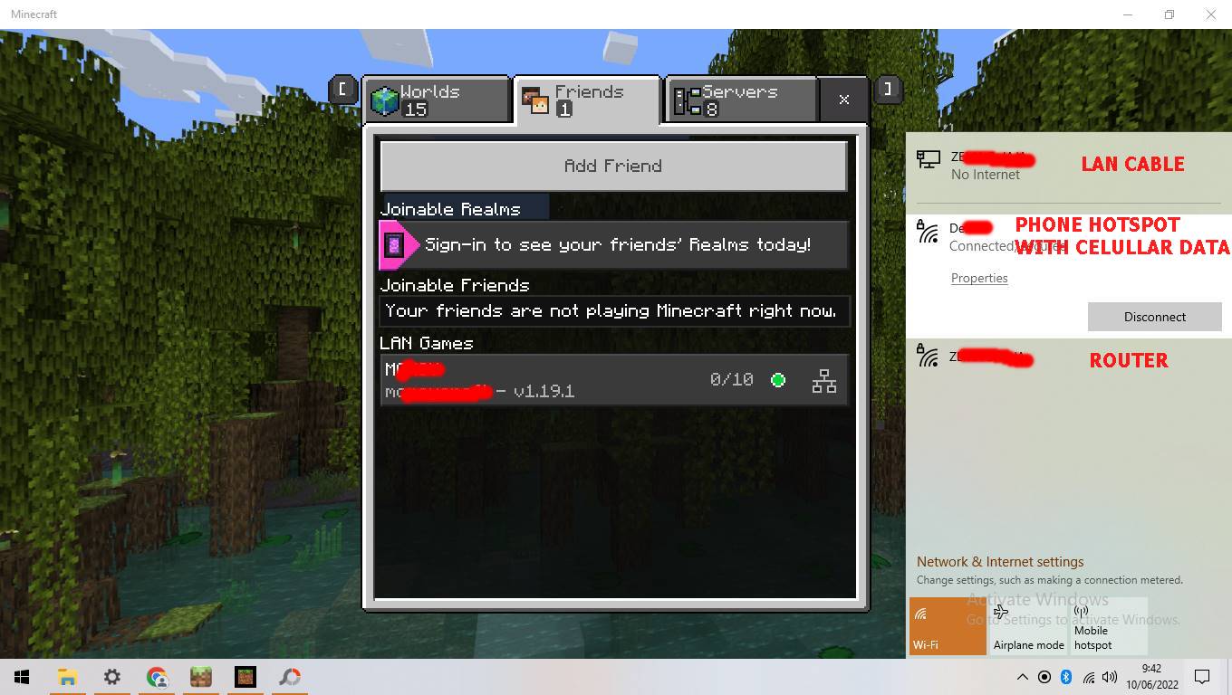 but my friend can join the server using android even without internet access on my router (and that text didn;t appears).