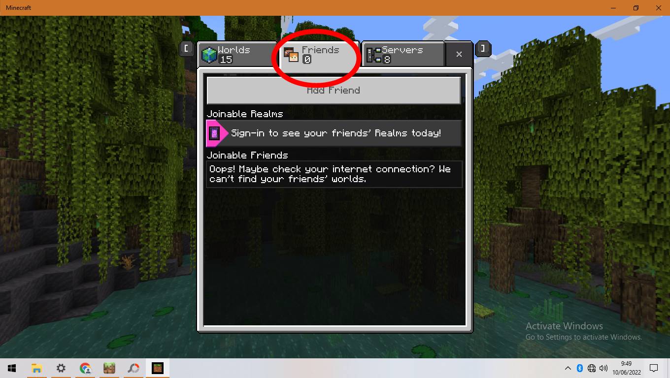 "Oops! Maybe check your internet connection? We can't find your friend worlds"