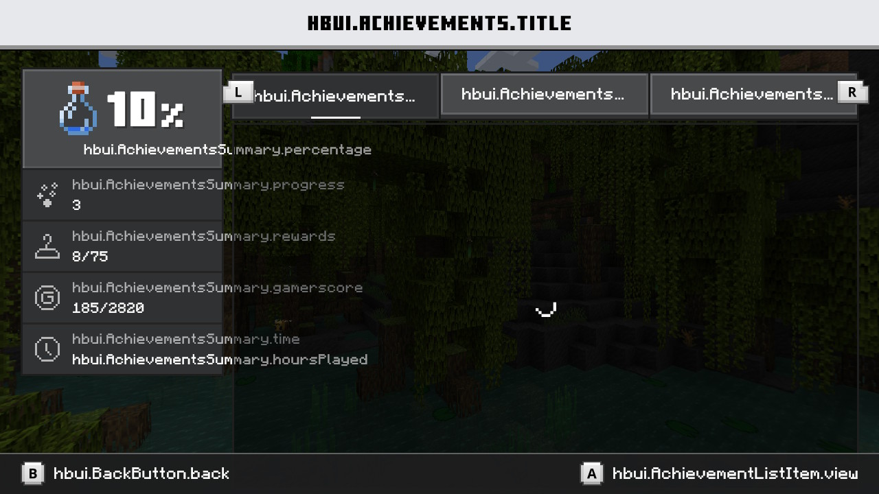 In the Switch version of Minecraft (I haven't check if others have the same problem) the achievements text is displayed like if it was a line of code or something, instead of just a single word