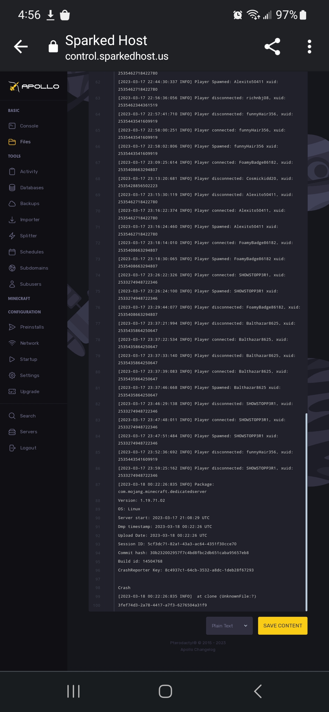 @GoldenHelmet, fair enough. Would be nice to get some sort of an update. Is it actively being worked on? Can they reproduce it? Do they need anything from the users? Even a response acknowledging the problem and saying they cannot figure out what is causing it would be better than totally ignoring everyone. I imagine there are thousands of people experiencing this bug but they either have no idea why the server is crashing or just have not bothered to search around and find this. I found it with a search trying to figure out if it was something I did wrong and could fix.