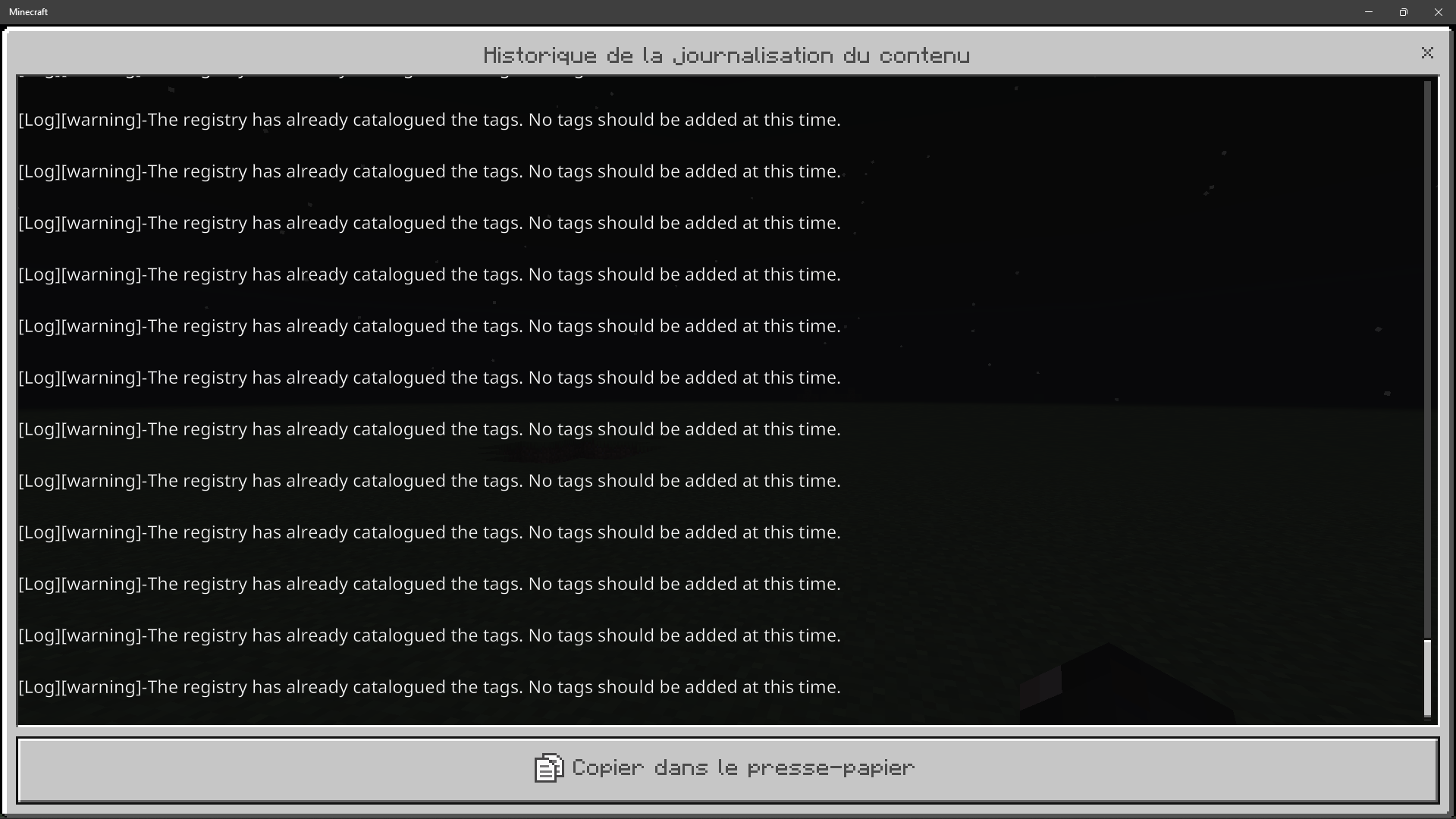 [Log][warning]-The registry has already catalogued the tags. No tags should be added at this time.