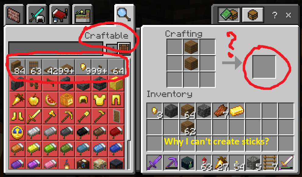 For example: I can't craft stick! I have Spruce Planks but I can't use them. Check my screenshots!