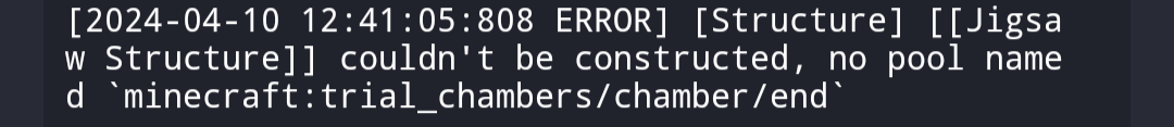 Since 1.20.71 my map has been buggy with chunks and this error appears in the console: ERROR [Structure) [[Jigsa w Structure]] couldn't be constructed, no pool name d `minecraft:trial_chambers/chamber/end.