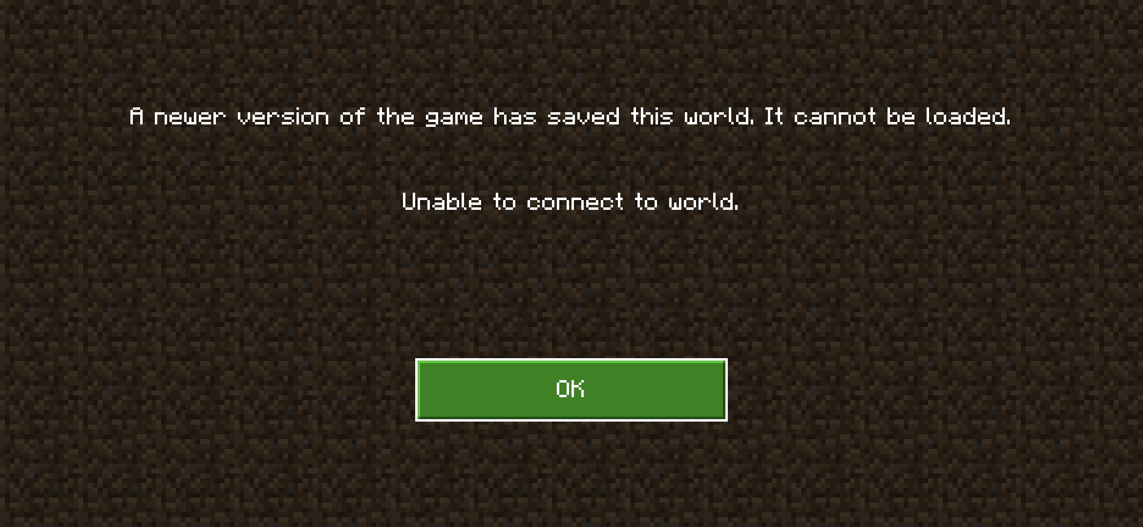 A newer version of the game has saved this world. It cannot be loaded. Unable connect to world