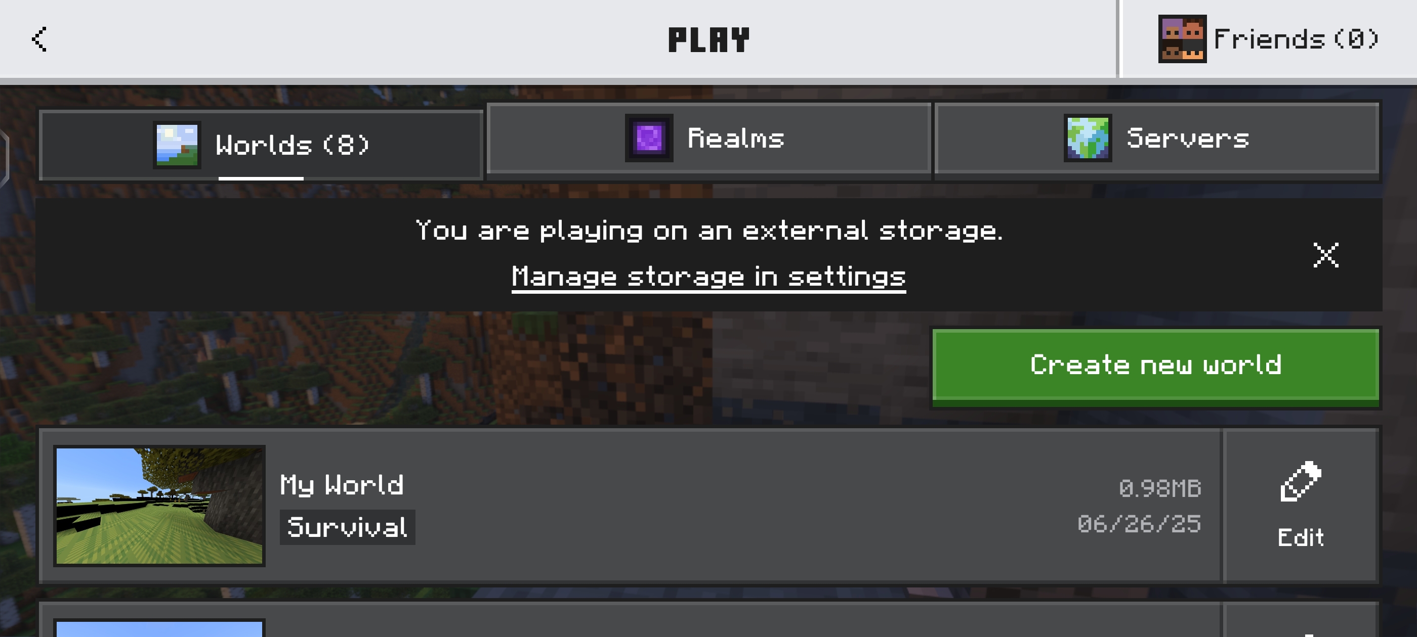Open Vibrant Visuals, the first settings page and create a world, press settings and turn off Vibrant Visuals, exit the game and come back in, it makes the textures look weird.