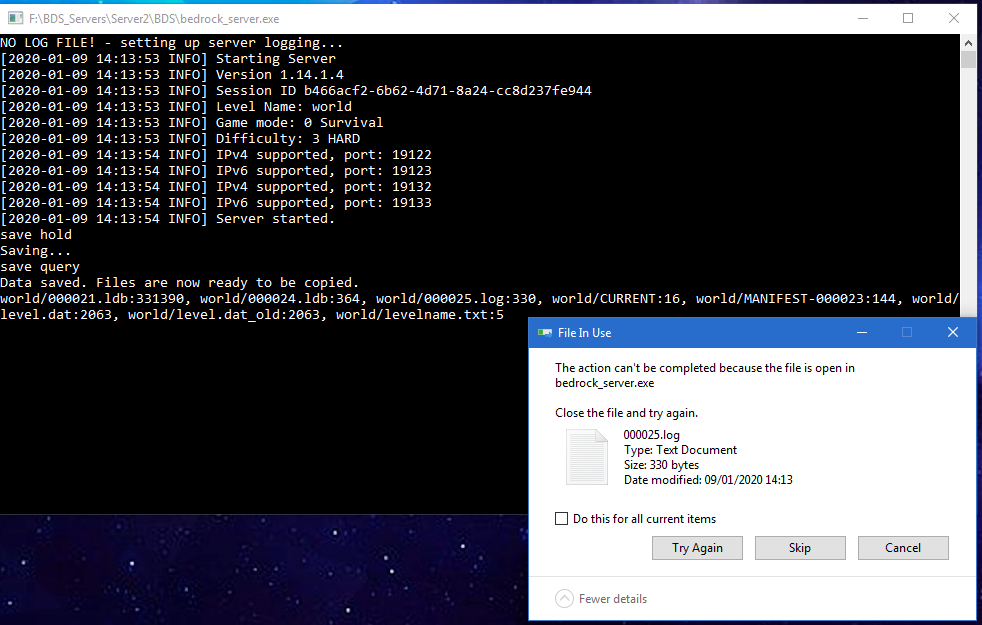 This means we cannot take a working backup of the world without completely shutting down the server.