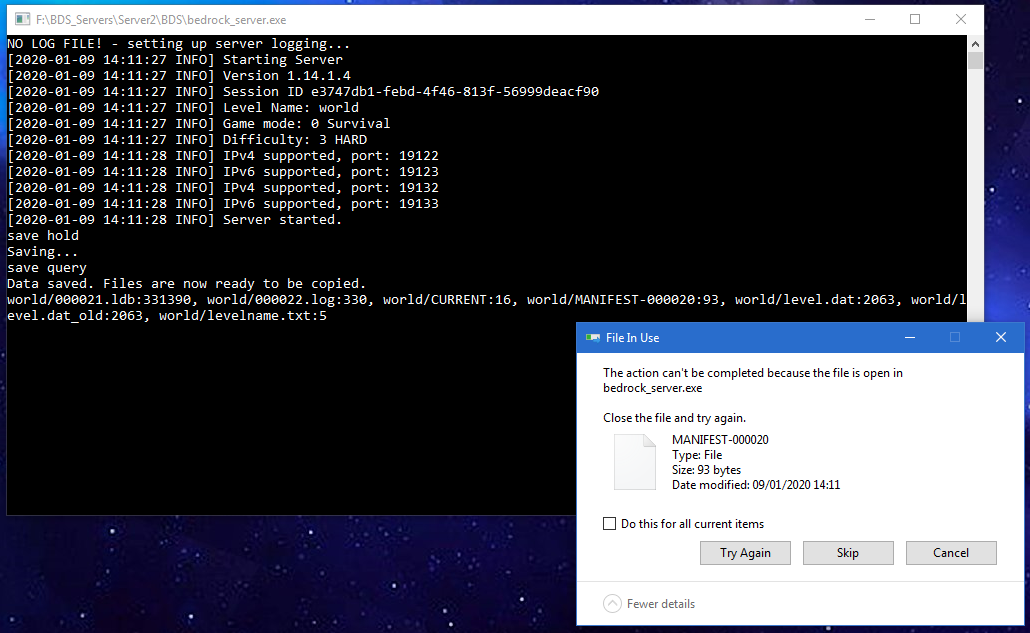 During Save Hold the MANIFEST and .log files from the db folder do not unlock as they should and can not be copied.