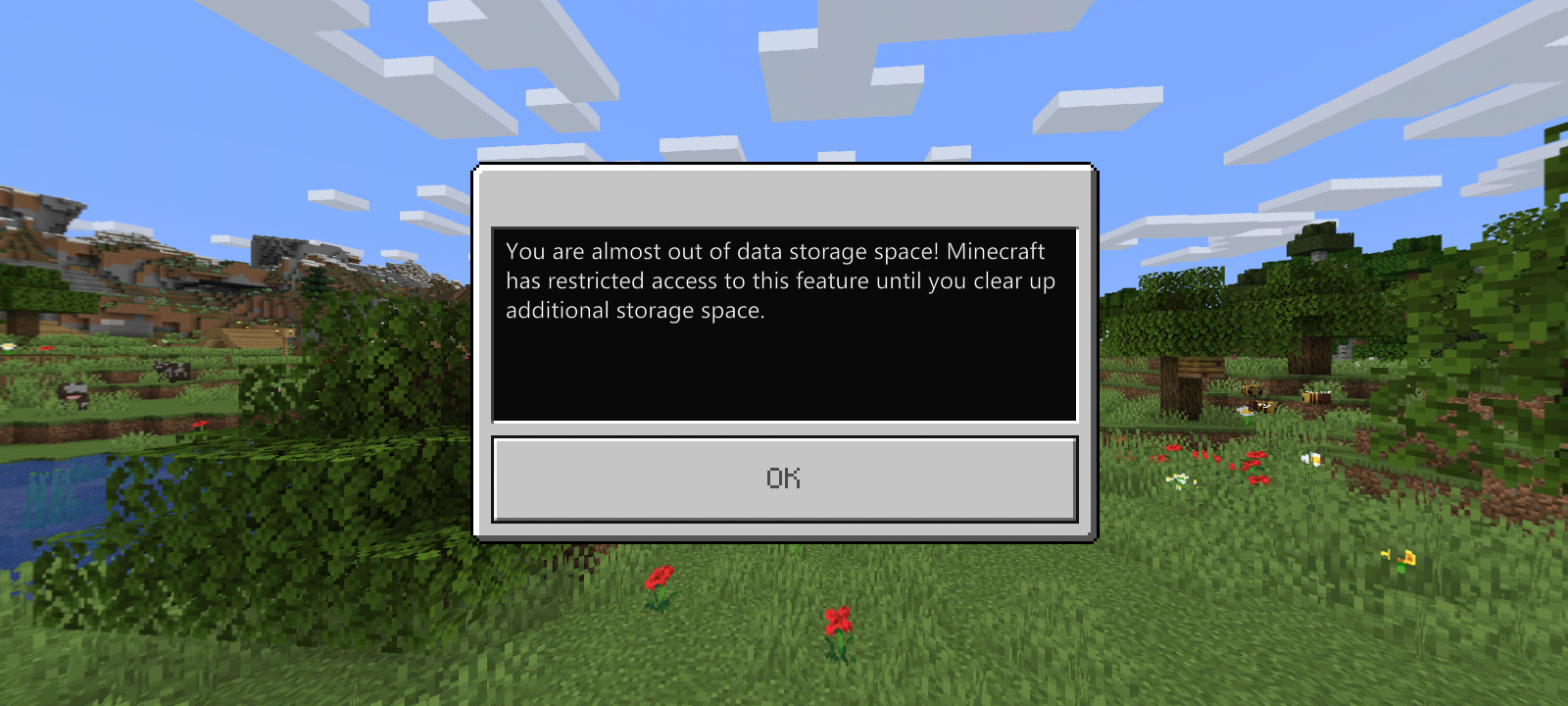 Whenever I try to download the recent backup of my realm world, it shows the message above, even thou I have 16GB free of storage, I can only download the back up from a week ago, the button download world doesnt even work, please fix this