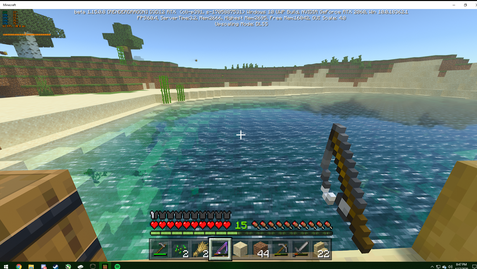 (version 1.15.0.8 wouldn't let me select this in the version drop down.) Attached is an image from the RTX demo. If you zoom in on the bee in the background you will see trails behind it. This effect is seen on any moving object at the edge of the render zone in this demo, and was first seen by myself as a horse was moving past but I was too slow on the screen capture. It seems to be at the edge of my render zone and i believe the trails are caused by the ray tracing features.
