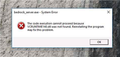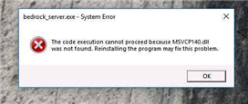 When installing the latest bedrock build and going to start it I get two errors around missing files this is on win10. See attached screenshots