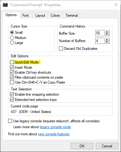 The feature is called quick edit and you can tell if you're in quick edit mode by checking the title bar. If it has "Select" in the title you have enabled quick edit mode.