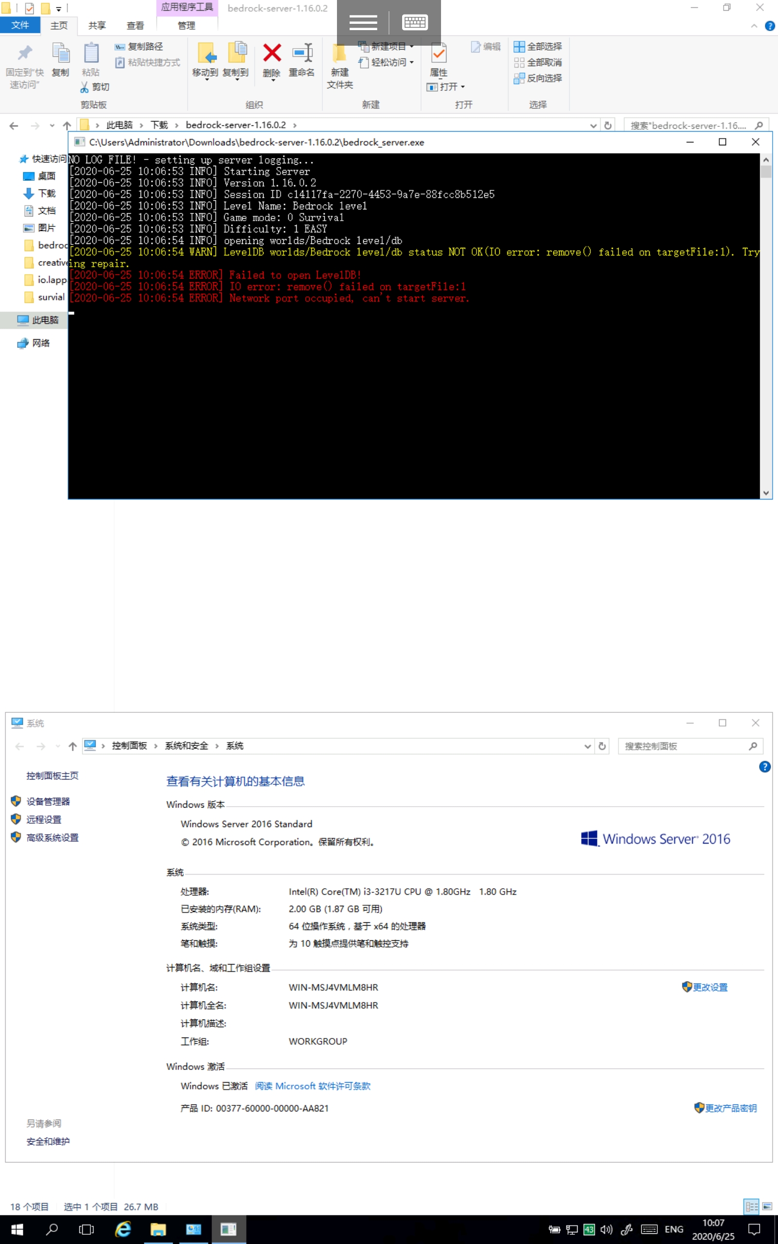 Bedrock Dedicated Server is compatible with Windows 10 1709 and later operating systems. 2016 LTSB is based off the 1607 Windows image and therefore does not meet the minimum OS requirements.