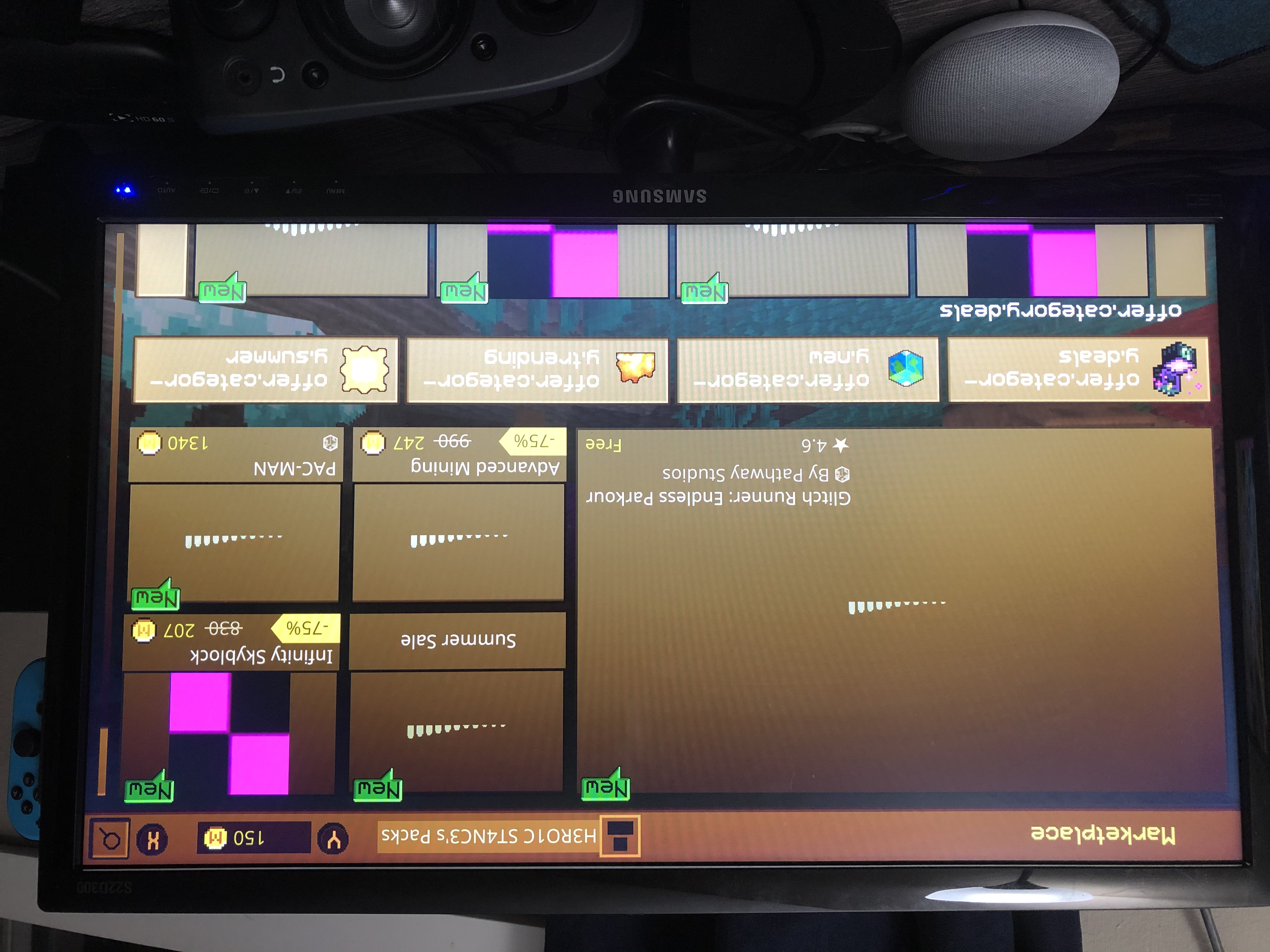 Staring at blocks gives a vocal count eg 1/10 and opening inventory Slots gives eg 16/135. Consistently at ALL BLOCKS and spaces title menus marketplace which doesn’t load proper.
