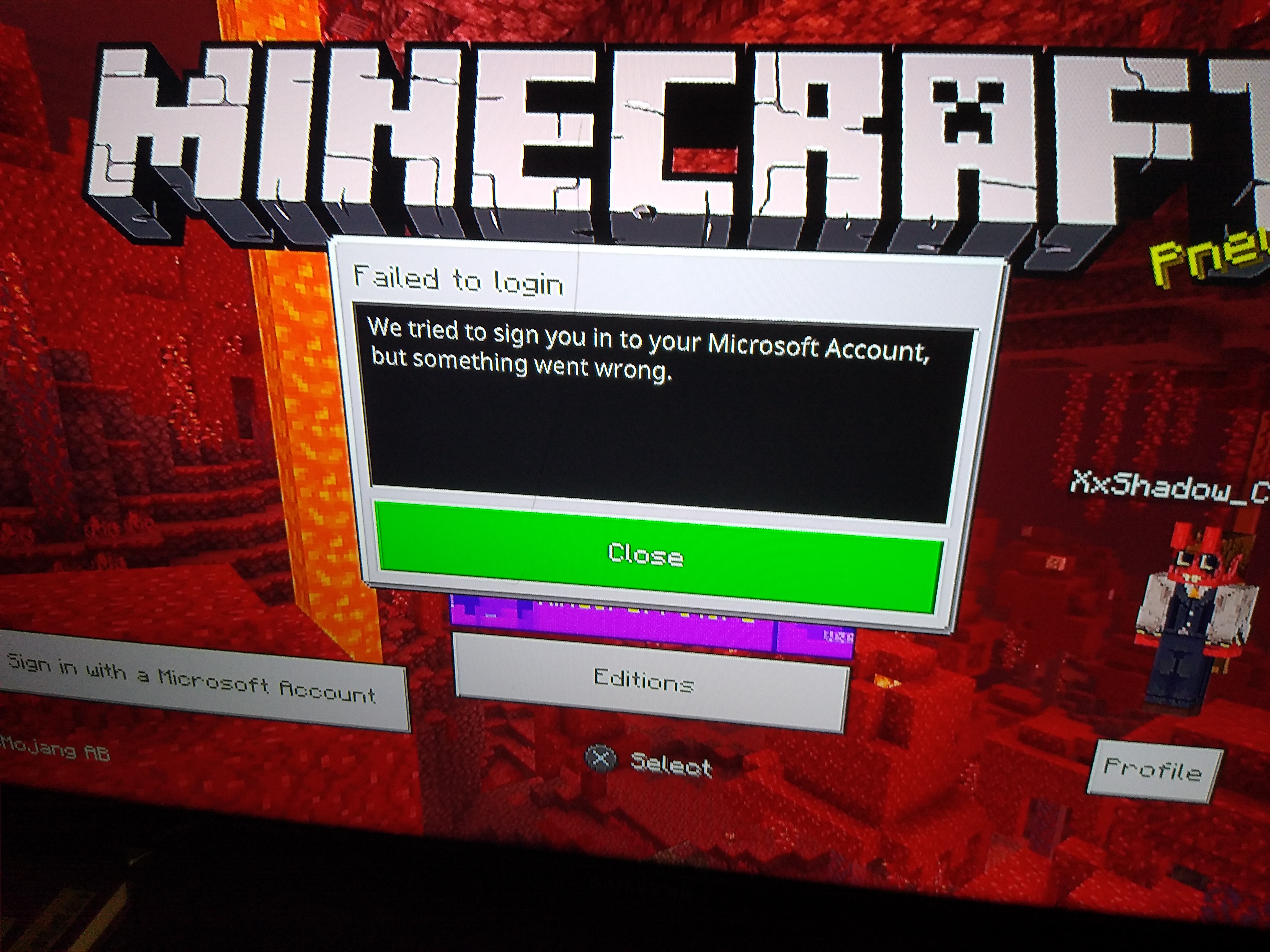 This error message keeps appearing as I try to log in to my account.