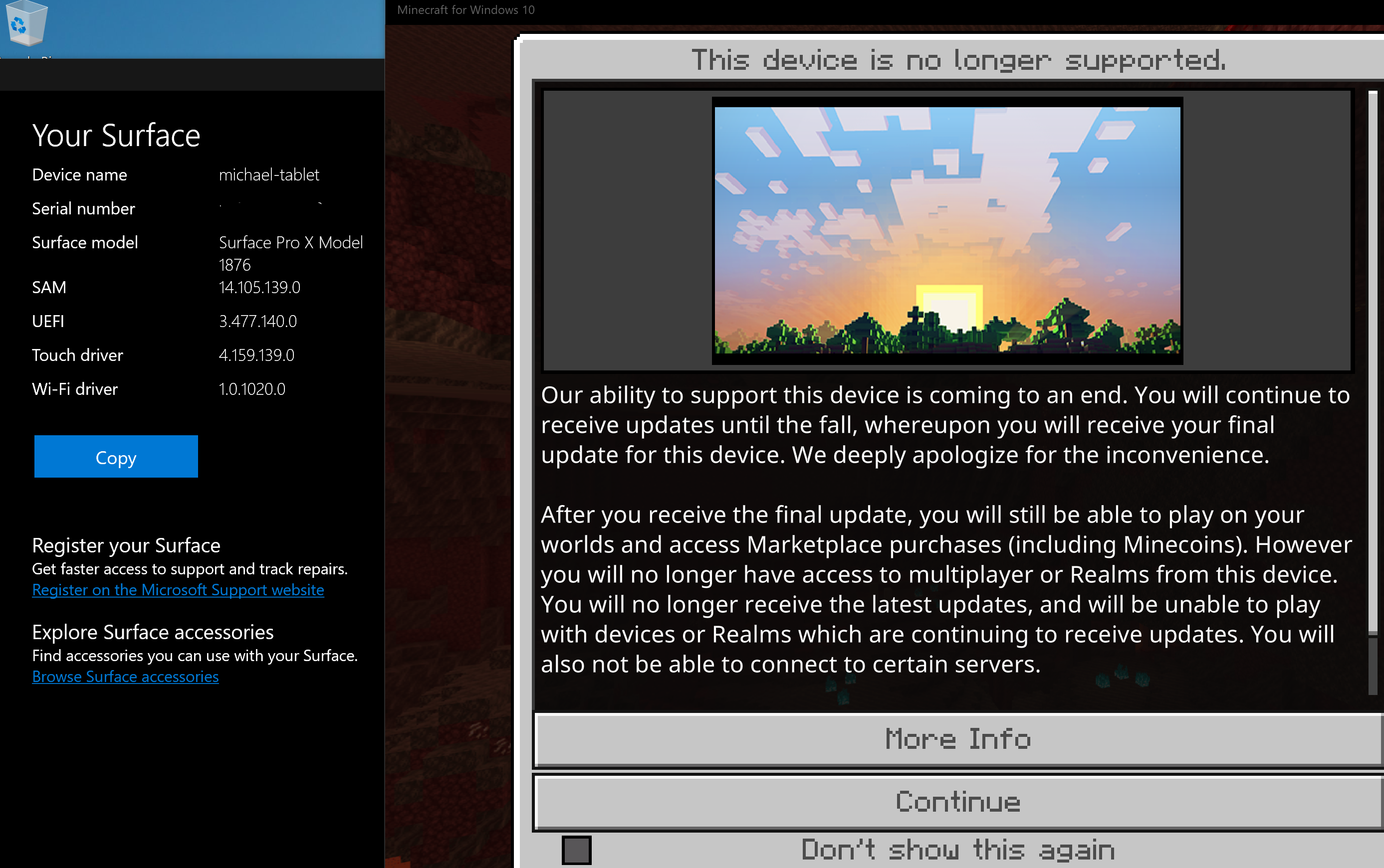 Received the message "This device is no longer supported" on my Surface Pro X