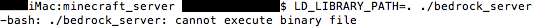 -bash: ./bedrock_server: cannot execute binary fileOn linux, it said the same thing.