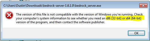 The server, when I run it on a x86 Windows computer, throws an error. See screenshot.