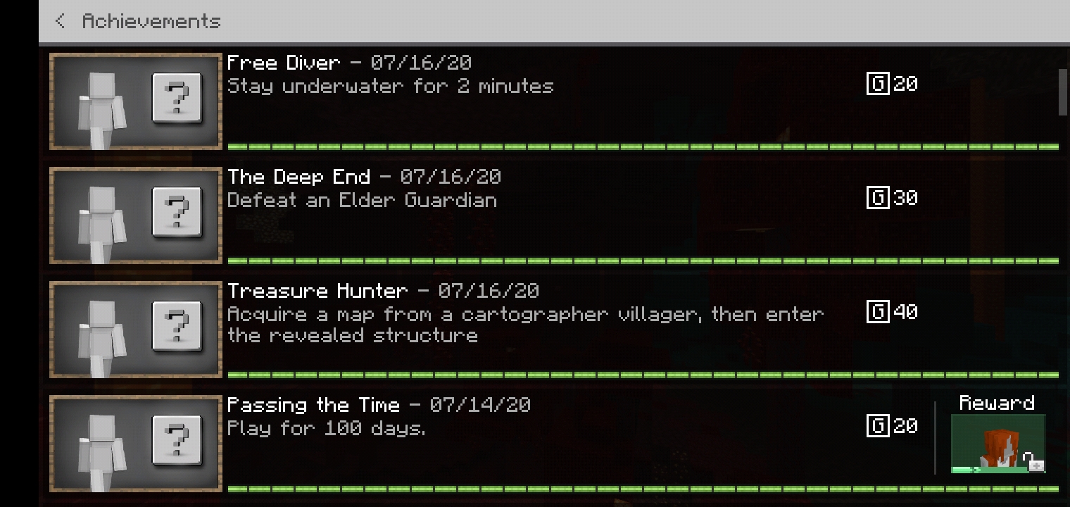 Hi mojang why is the achivements screen not change and all the characters are white and when i complete a achivements it delays and the achivements not finished is this a problem on my phone or what