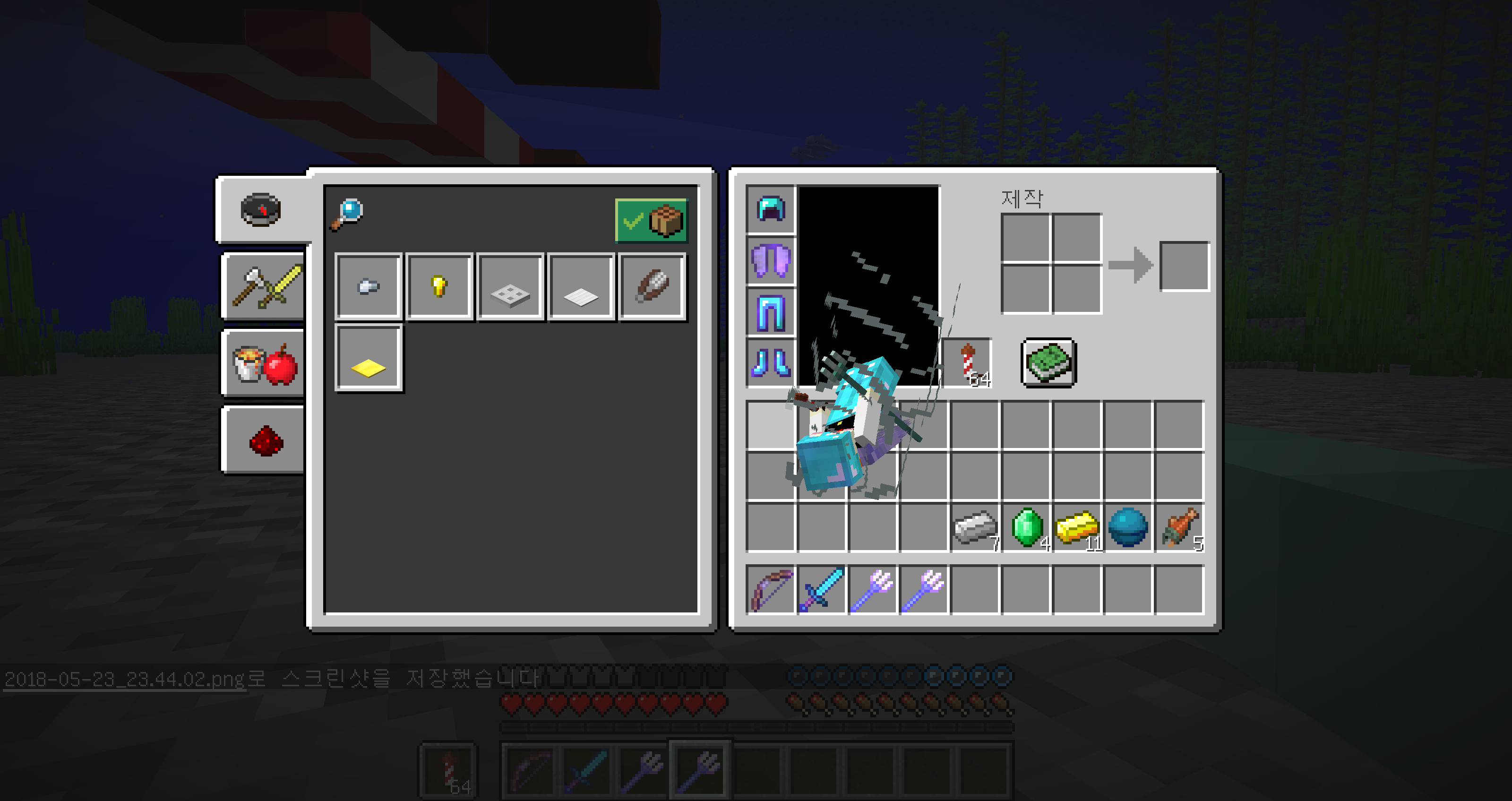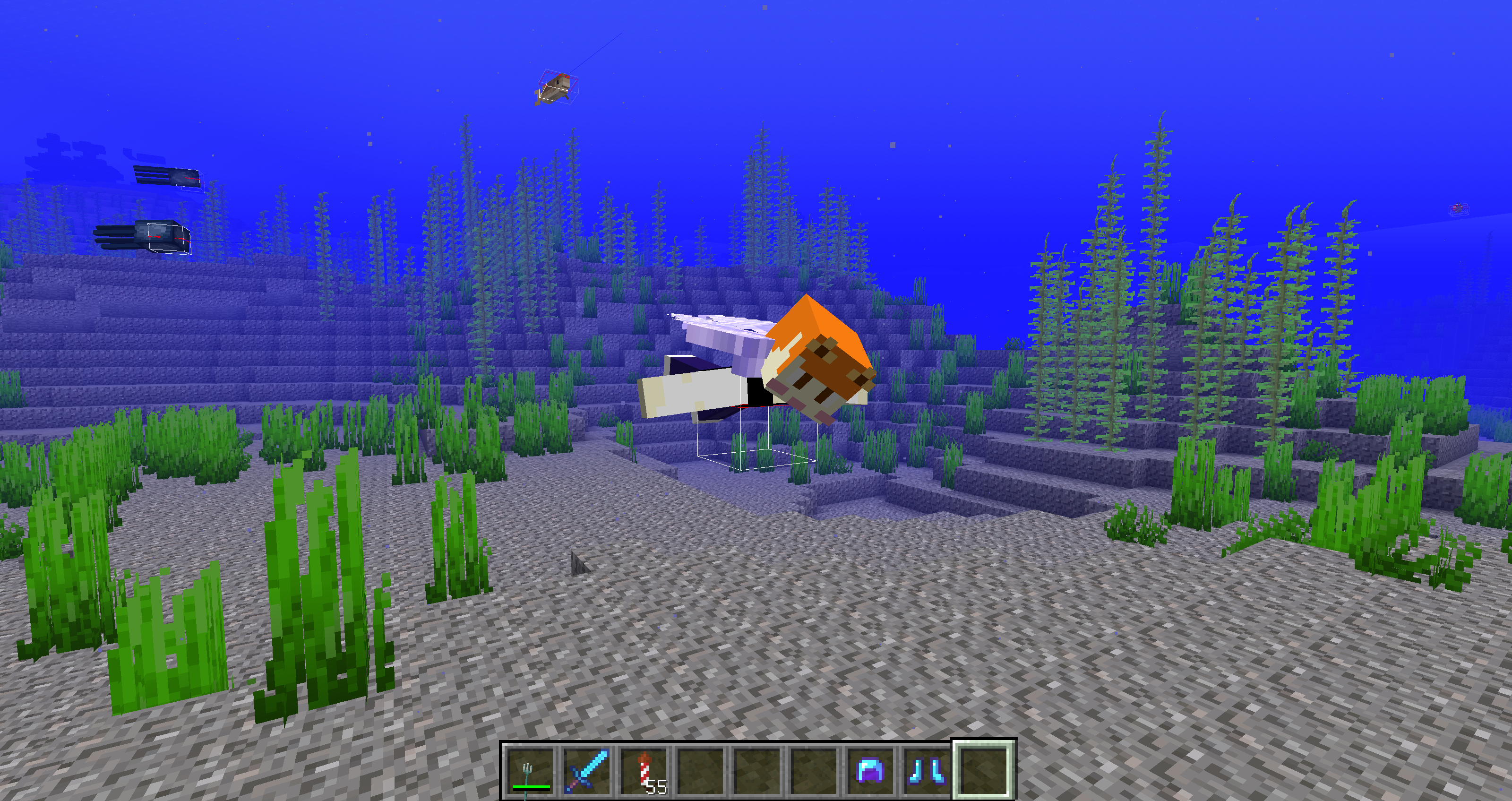 This is also the case with the new 1.13 riptide animation. Observing this misplacement in 3rd person mode is harder to spot, since the animation itself is obscuring the white hitbox. However, when you look at the character in the survival inventory, it is obvious that the model is outside of the black box and obscuring the inbentory slots, just like the elytra animation.