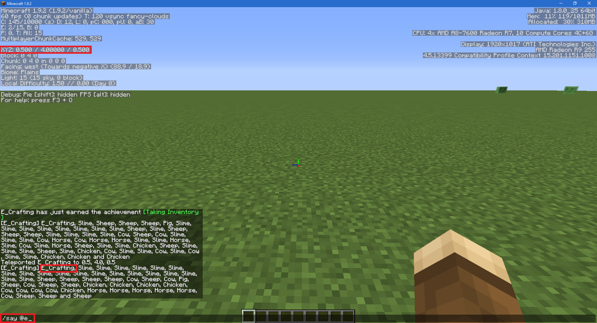 6. /say @e no longer works. teleporting back to spawn doesn't fix it.