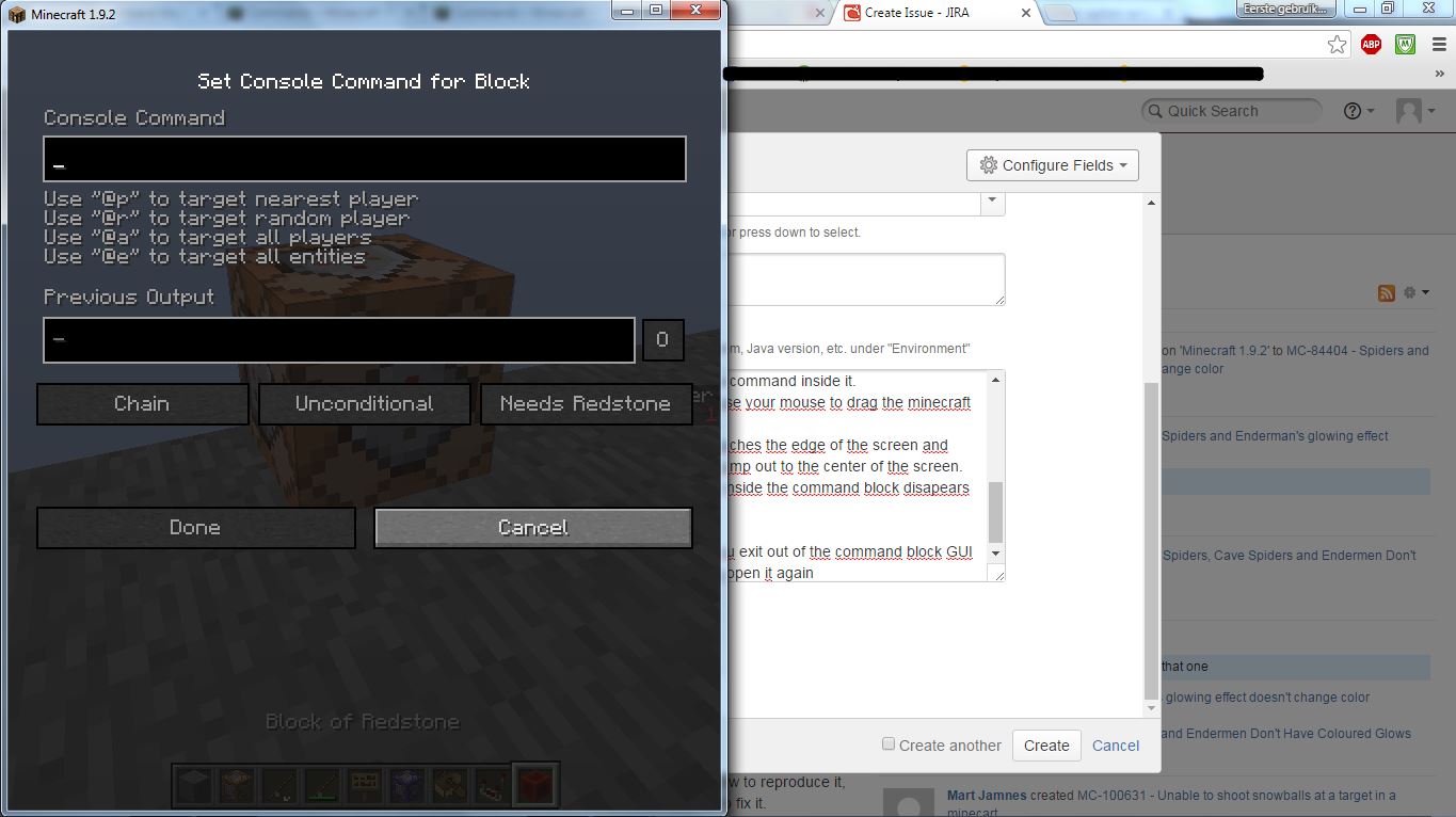 2. once in the command block GUI use your mouse to drag the minecraft window to the side of your screen.