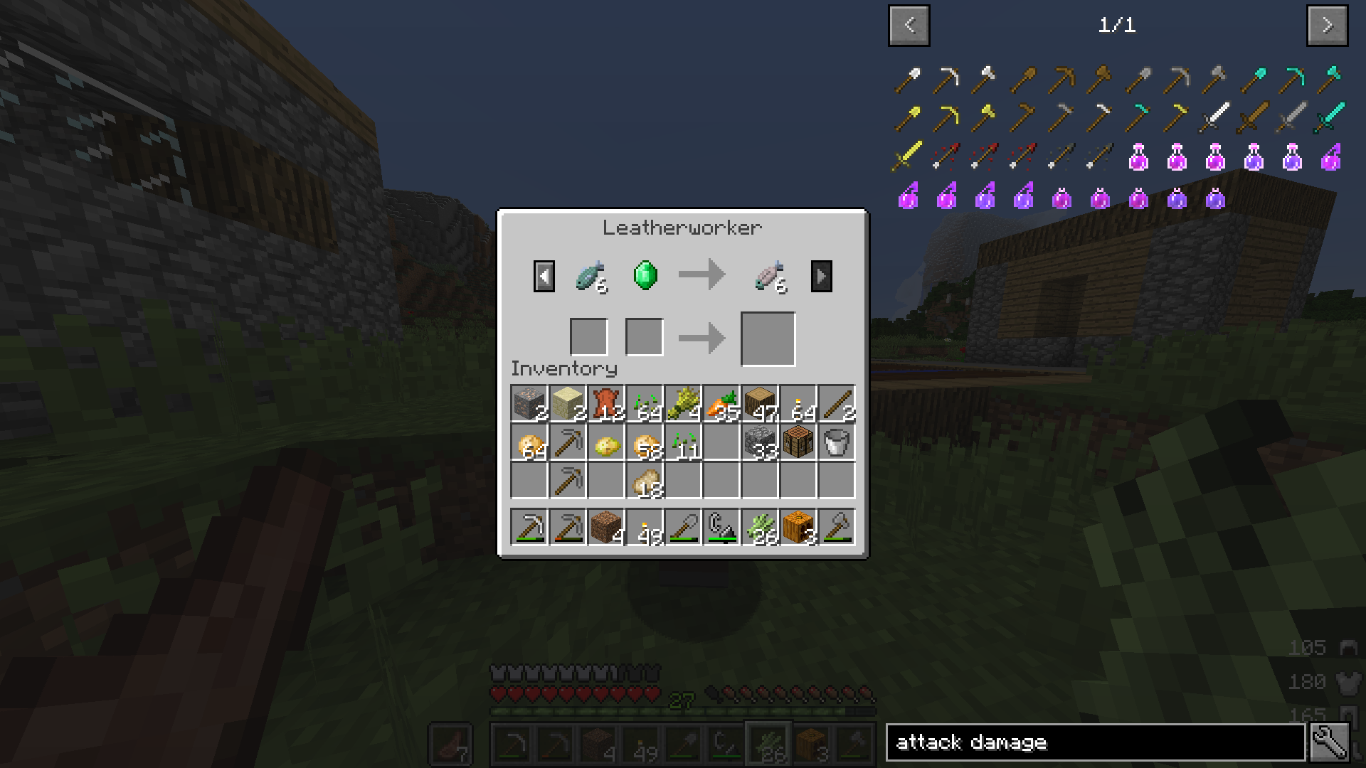 For example, a "Leatherworker", who looked like a butcher, traded strings, coal and raw fish to cooked fish. Another one was called "farmer"(It's strange enough the name is written lowercase, isn't it) and he traded strings and arrows.
