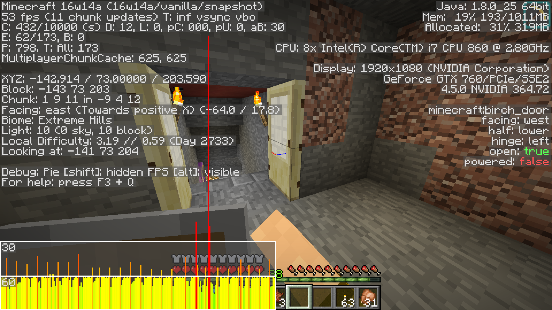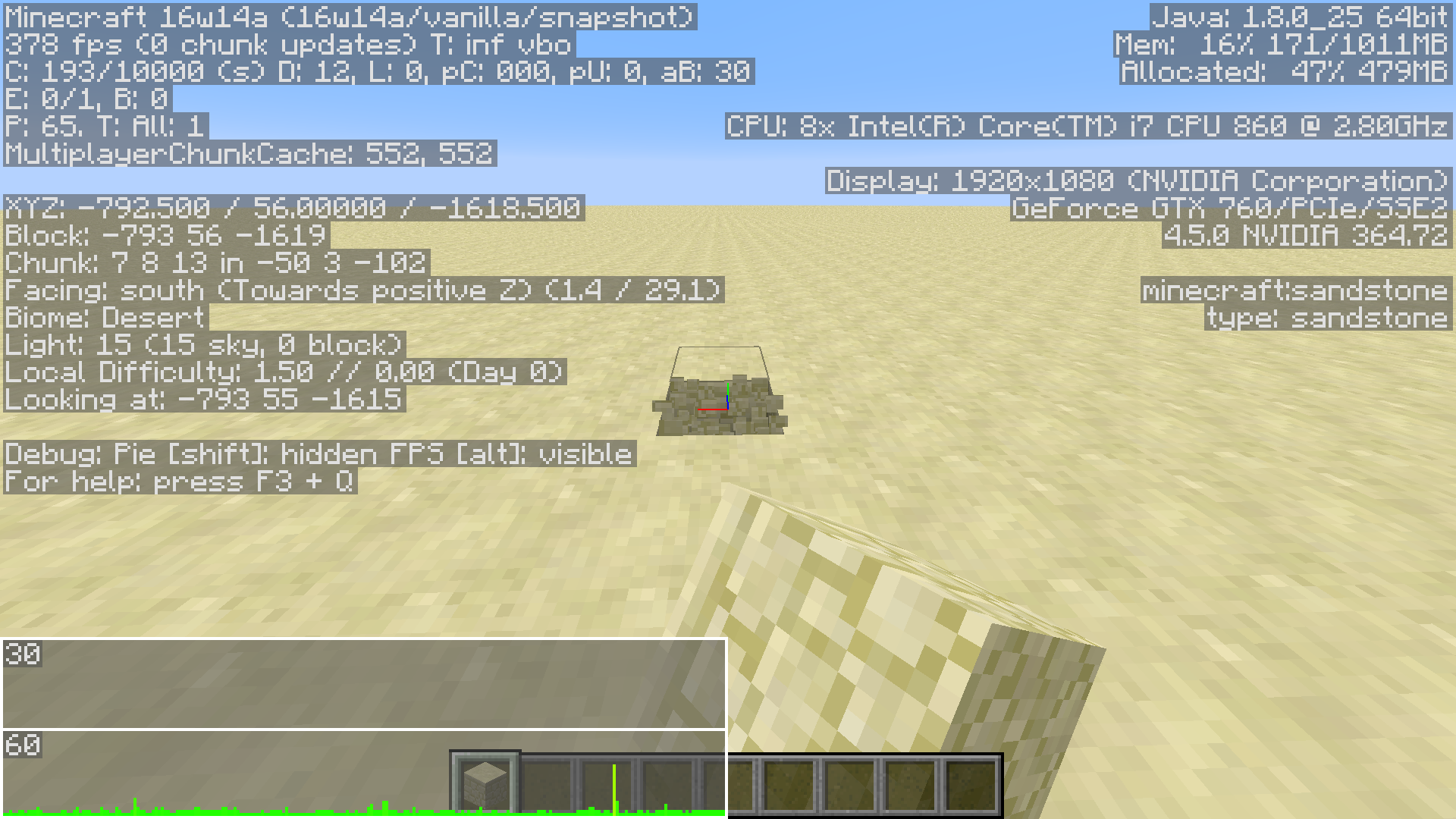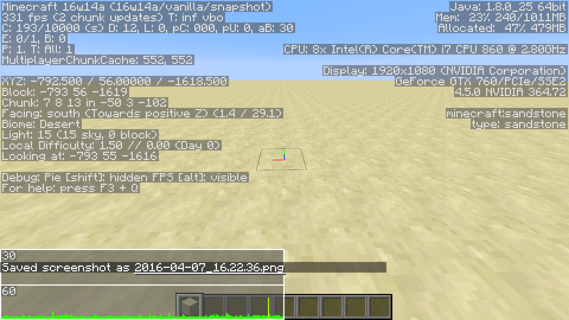 These are all in a superflat world (redstone ready preset, freshly generated)
