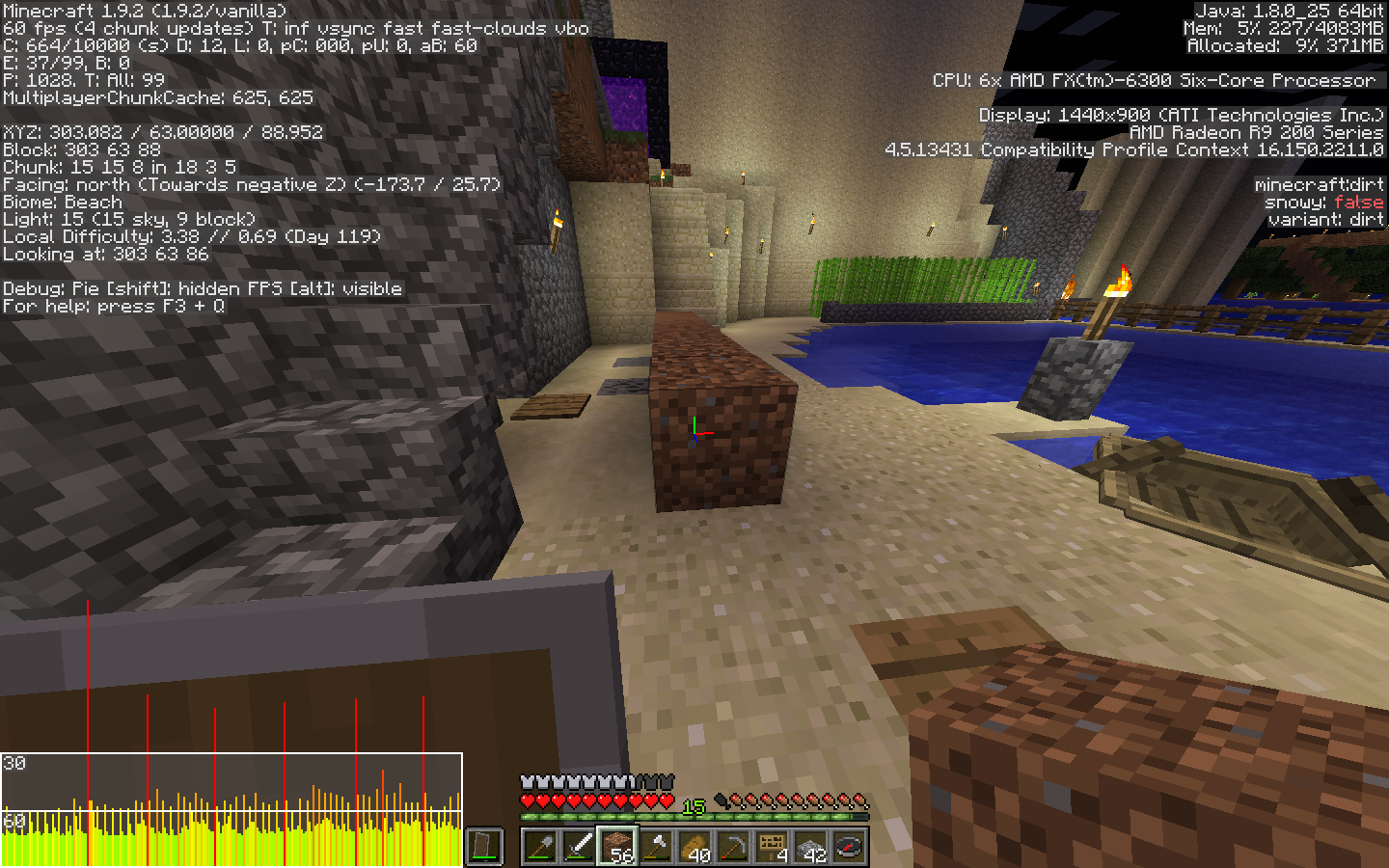 Stutters every time a block is placed or destroyed in single player . Each lag spike brings the fps to zero .