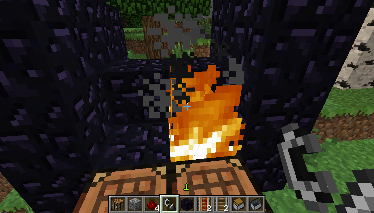 }Tested on 1.4.7. After those changes, even crossed portal frames will be handled as long as either orientation can be detected as valid and the other not. Or, if overlapping portals are both full/valid, but the fire is applied to a block that is not in the crossed/overlapping section (in which case the fire block can only be part of one portal frame), the changes still work (as they did before, too).