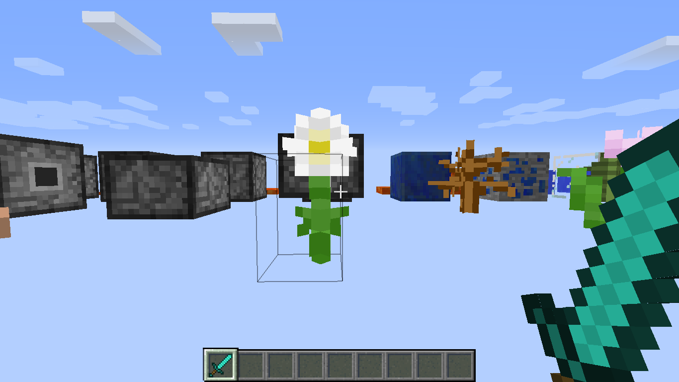 This bug is that the hitbox of flowers is moved; what makes that the flower is often moved by almost a block sometimes to .Pour to reproduce this bug went simply to a world with any gamemode except spectator and looked the hitbox.The bug can be visible on all the gamemode except the spectator.