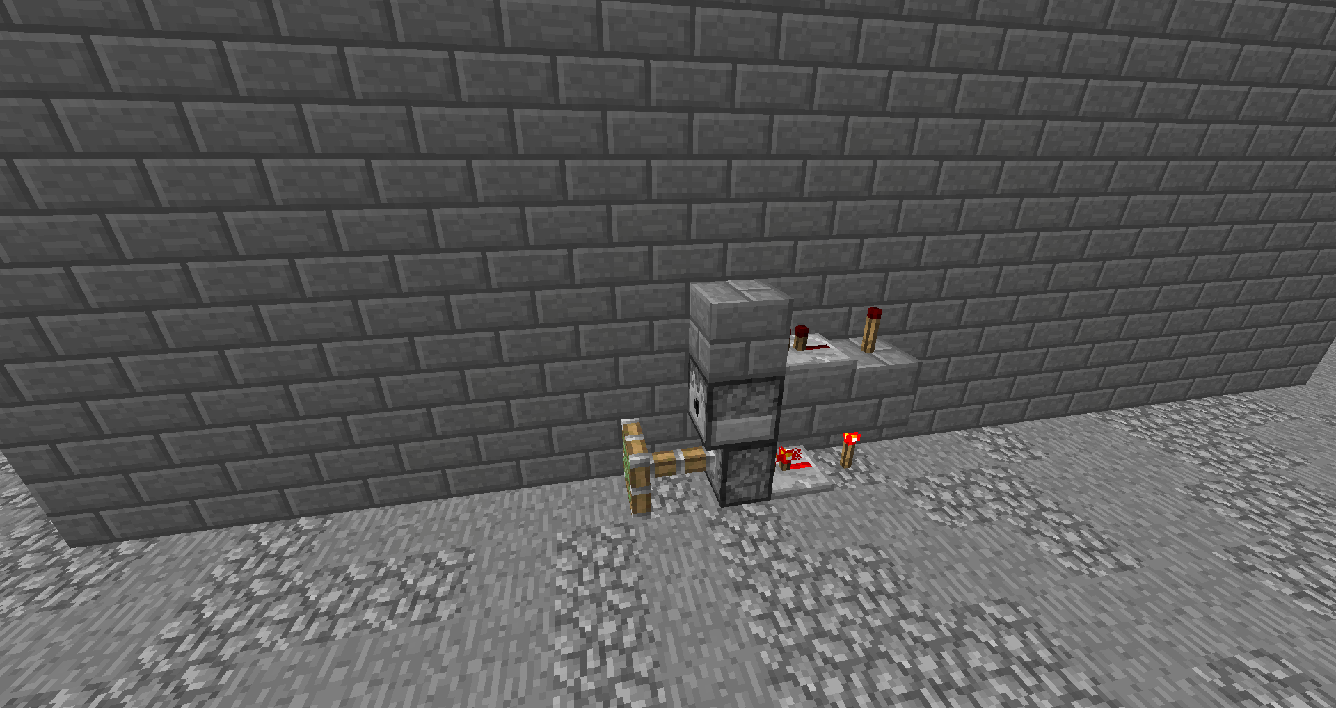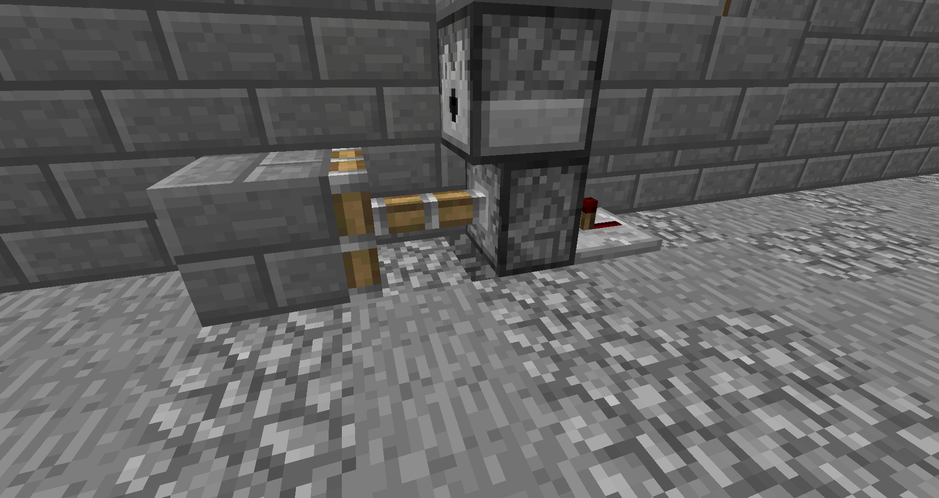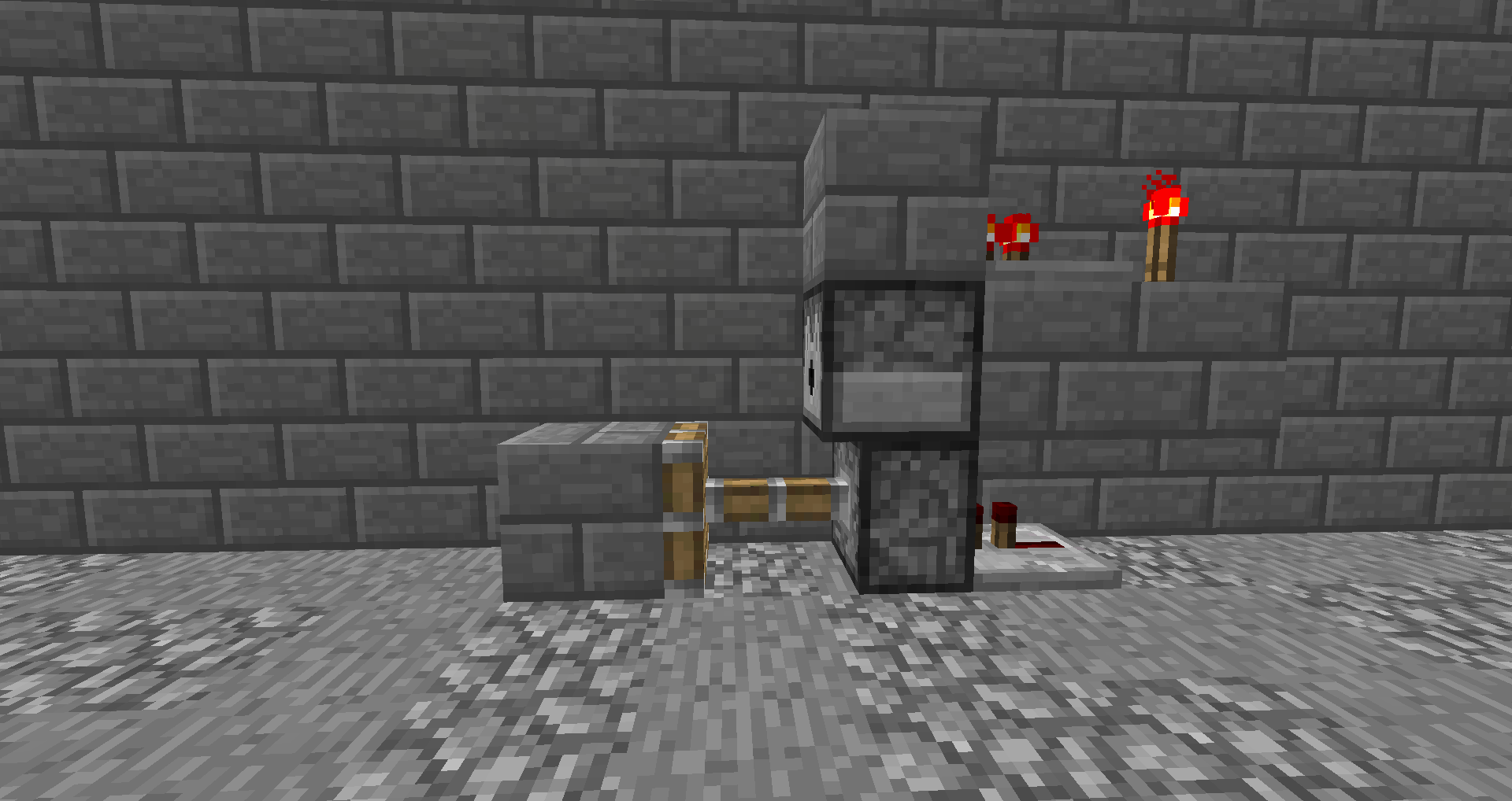 When a piston get activated directly (so direct from a repeater or redstone dust) and a platue is placed above the incoming signal and top of that is a redstone signal which goes directly above the piston(it doesn't have to touch blocks like in the screenshots) and the power source to the piston is removed but there is a power source for the upper redstone circuit then the piston stays activated and doesn't accept block updates untill the redstone (from the upper circuit that was diagonally above the piston) is turned off