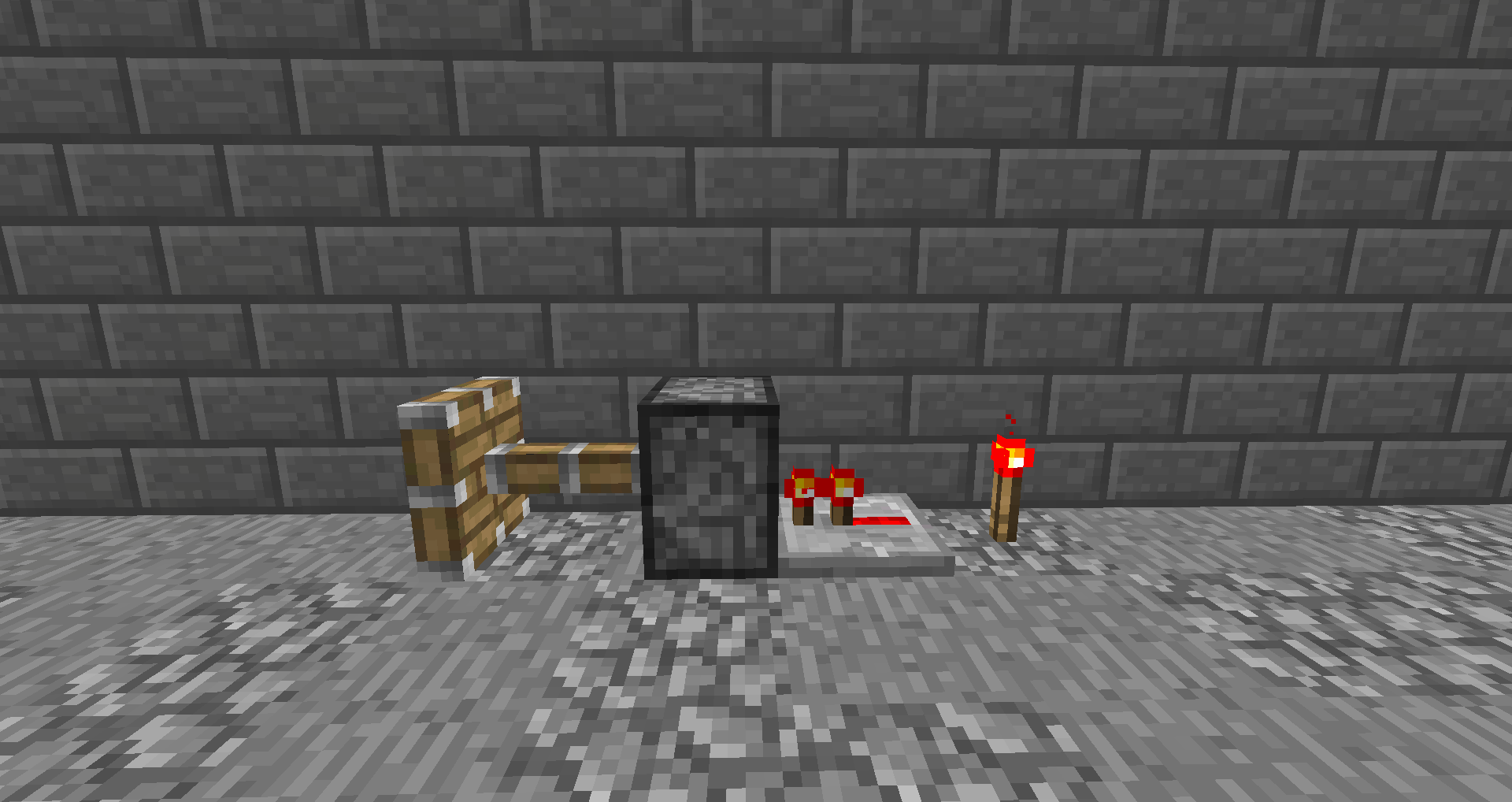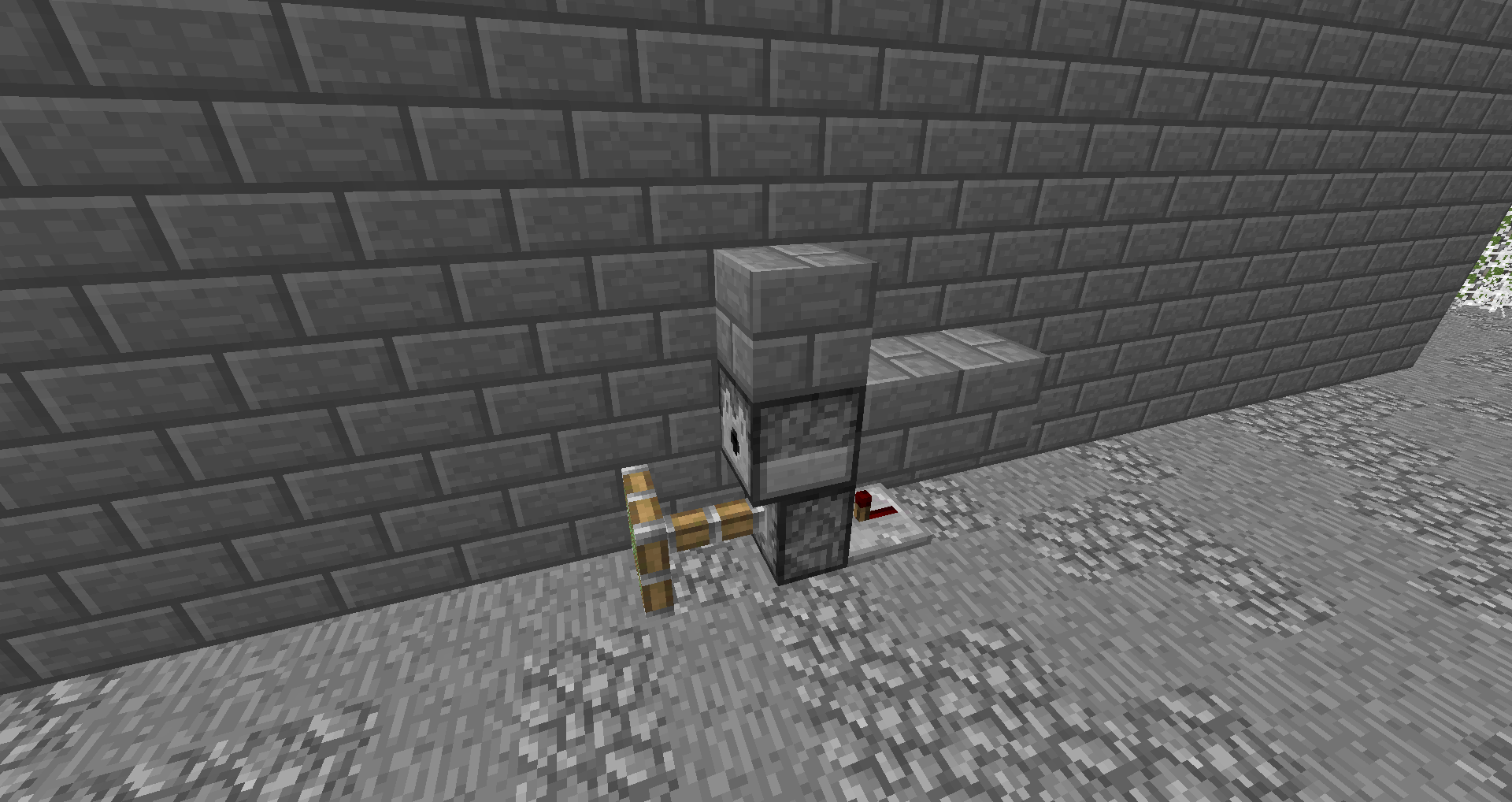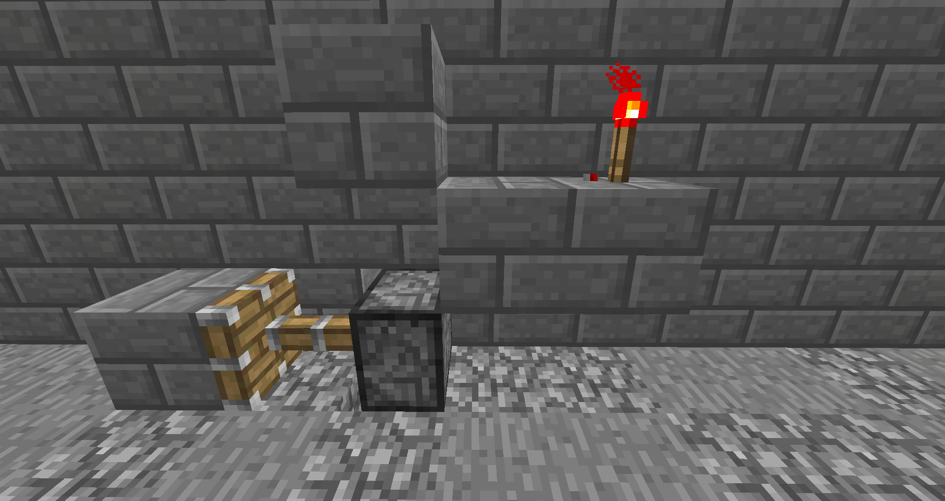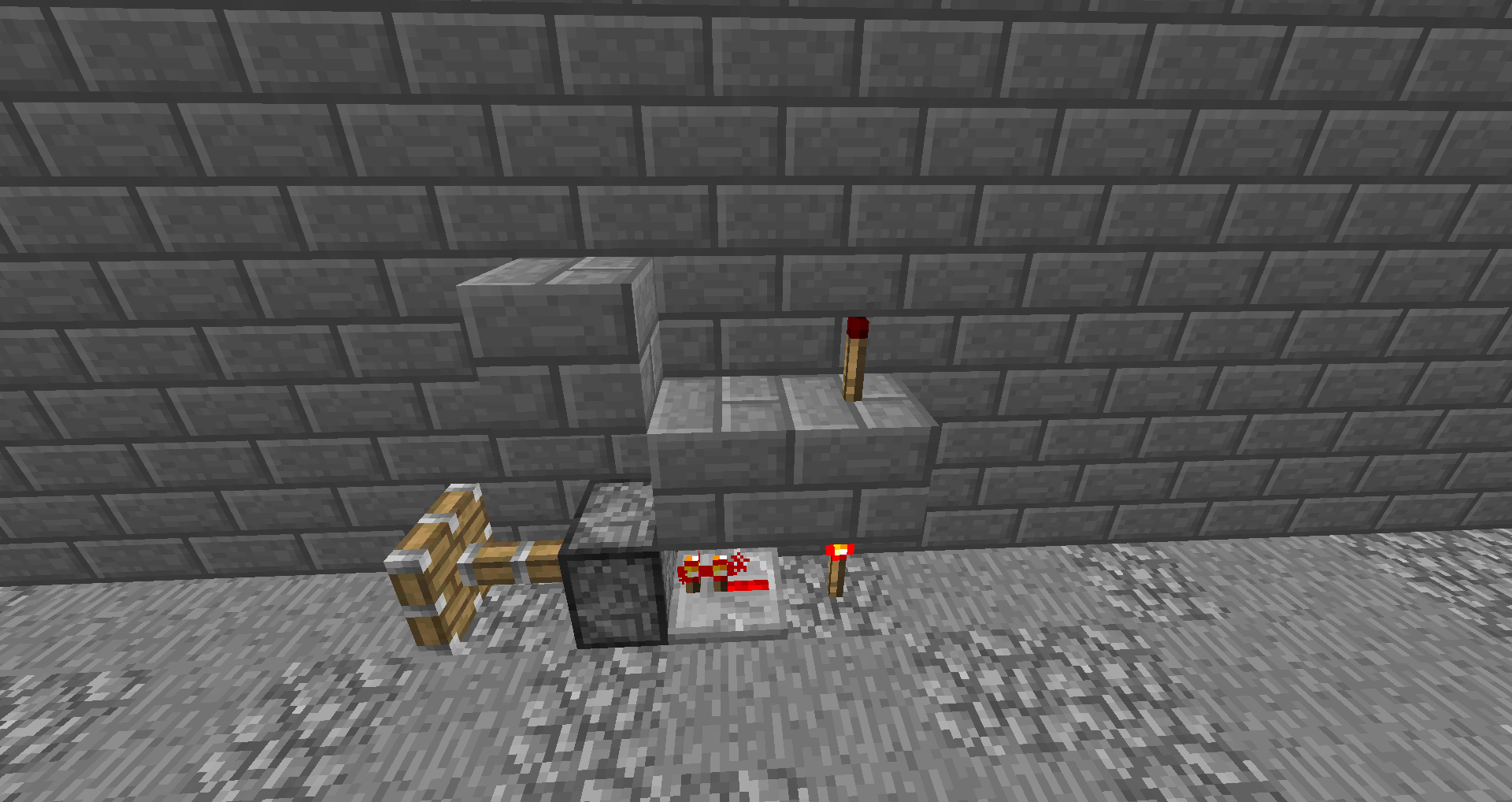 When a piston get activated directly (so direct from a repeater or redstone dust) and a platue is placed above the incoming signal and top of that is a redstone signal which goes directly above the piston(it doesn't have to touch blocks like in the screenshots) and the power source to the piston is removed but there is a power source for the upper redstone circuit then the piston stays activated and doesn't accept block updates untill the redstone (from the upper circuit that was diagonally above the piston) is turned off
