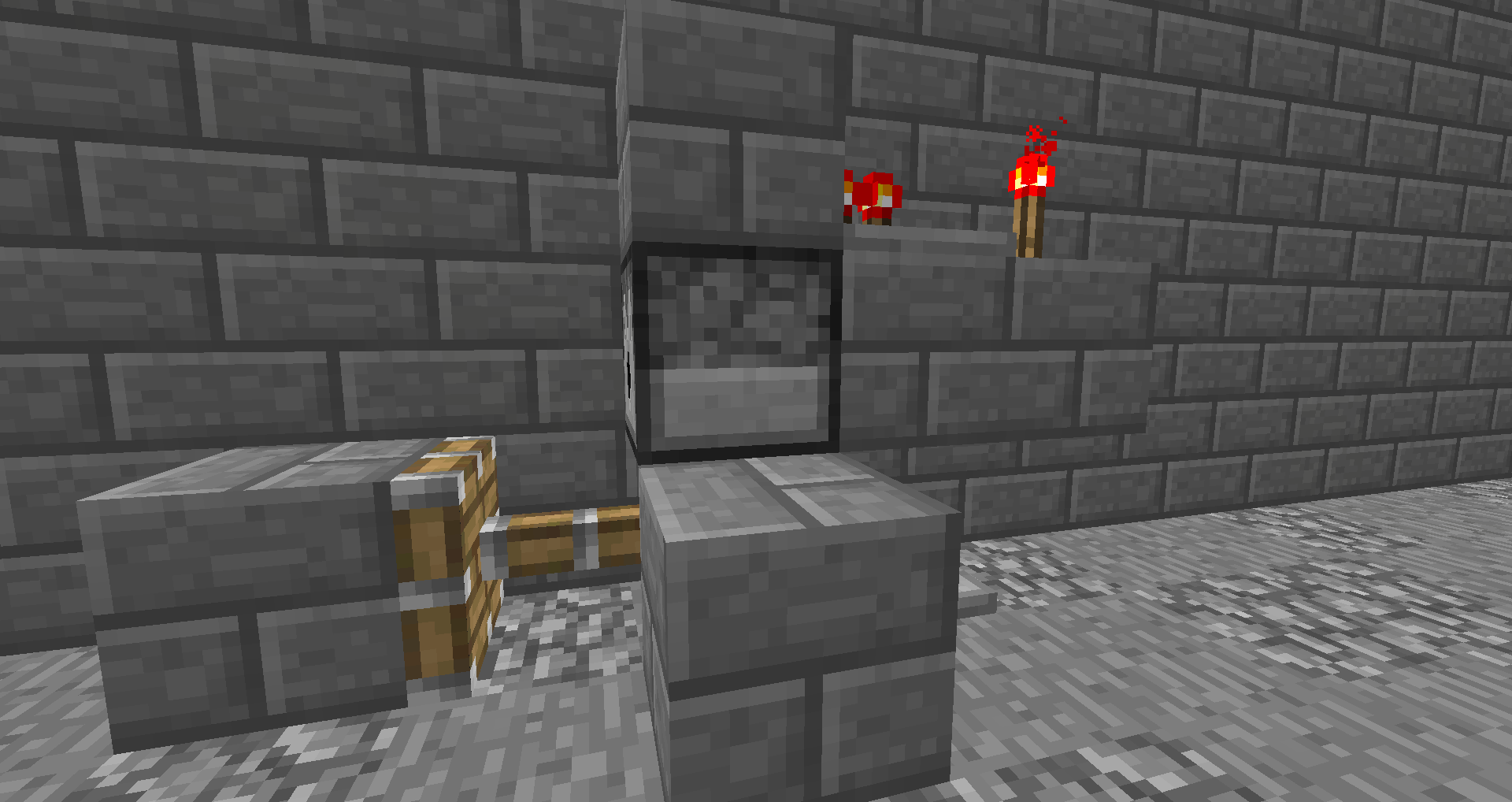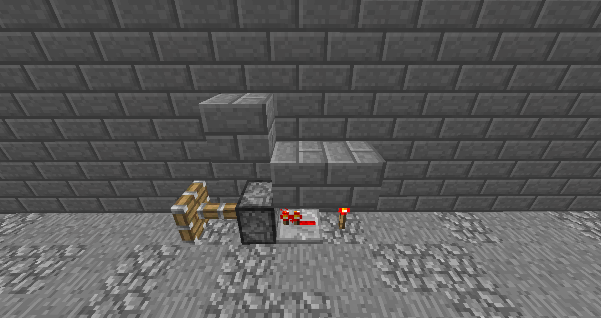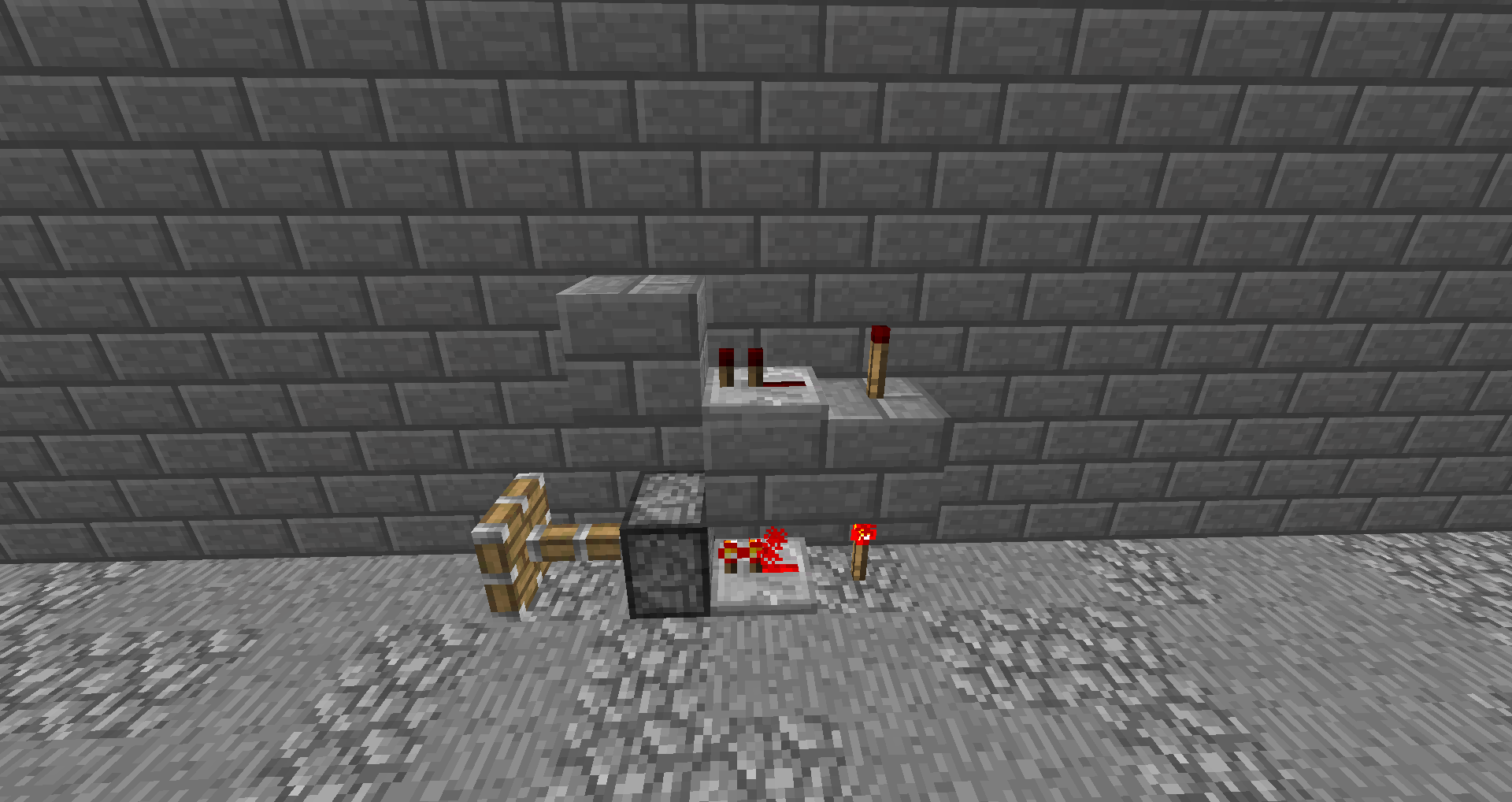 the activated redstone part can be redstone dust and a redstone repeater both on the upper and the lower redstone circuit