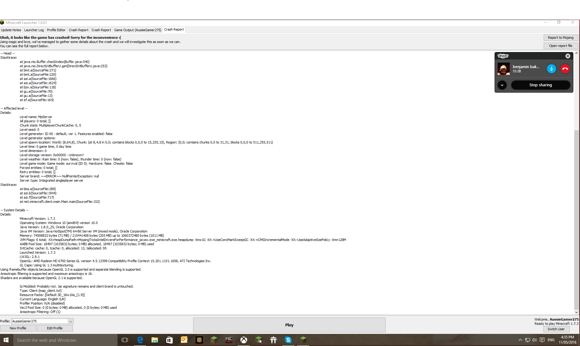 the game crashed