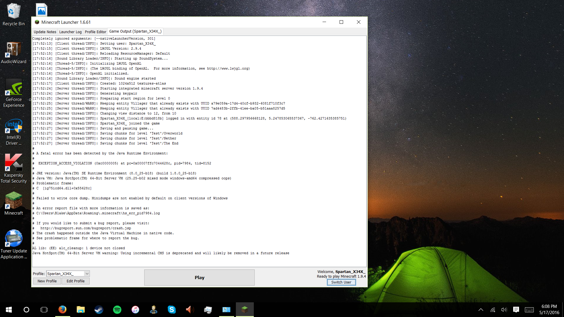 If ANY world is loaded JAVA crashes. I have the latest JAVA, Minecraft launcher, Nvidia driver, Etc.