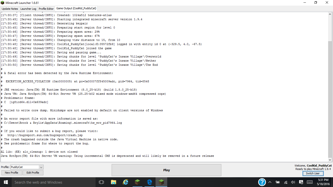 when I open minecraft and select game, launcher begins then crashes