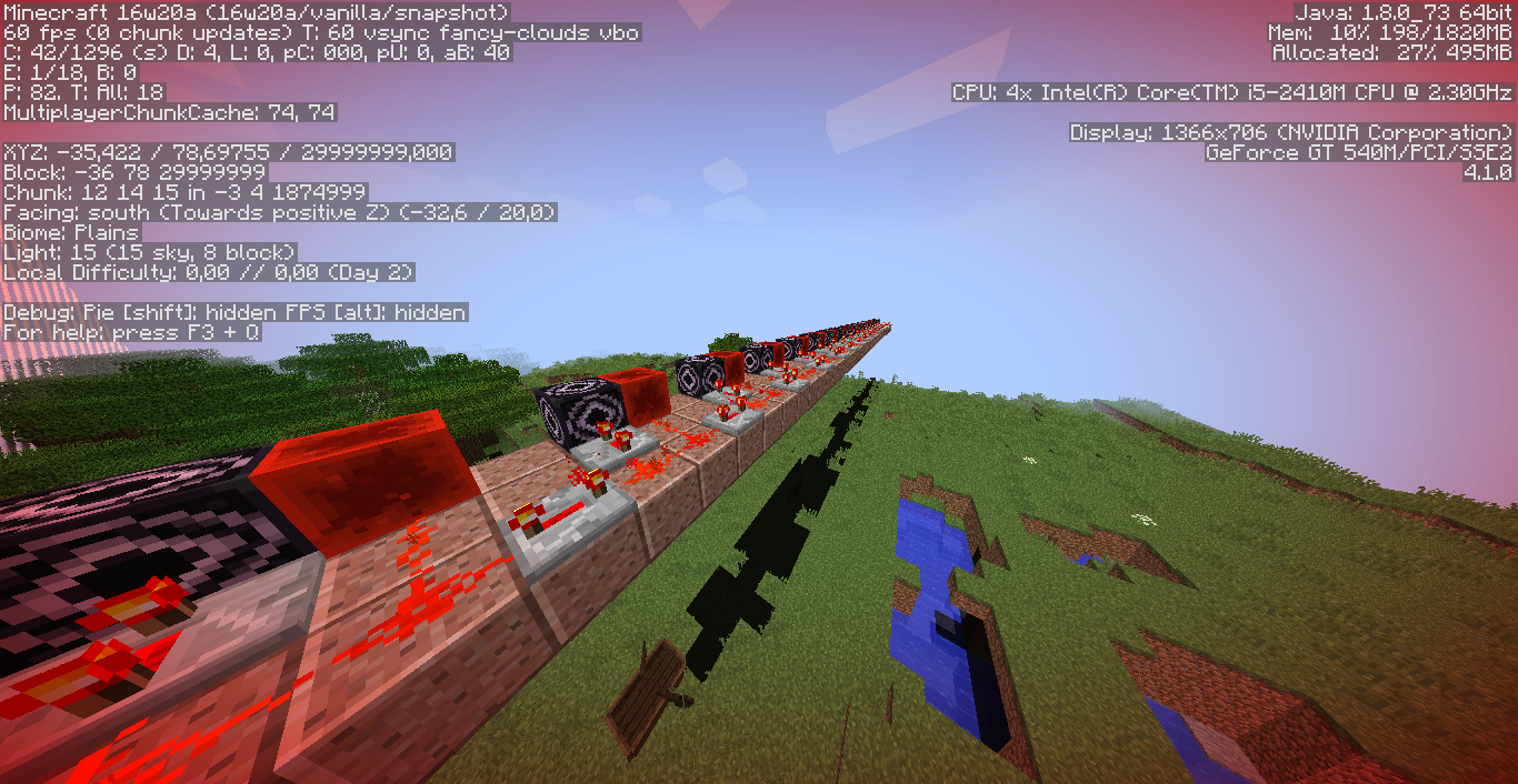 3. See that even through the border, the structure mechanism is continuing. This is inconsistent with other block-changing blocks such as pistons, which don't extend/retract if they are outside of the border.