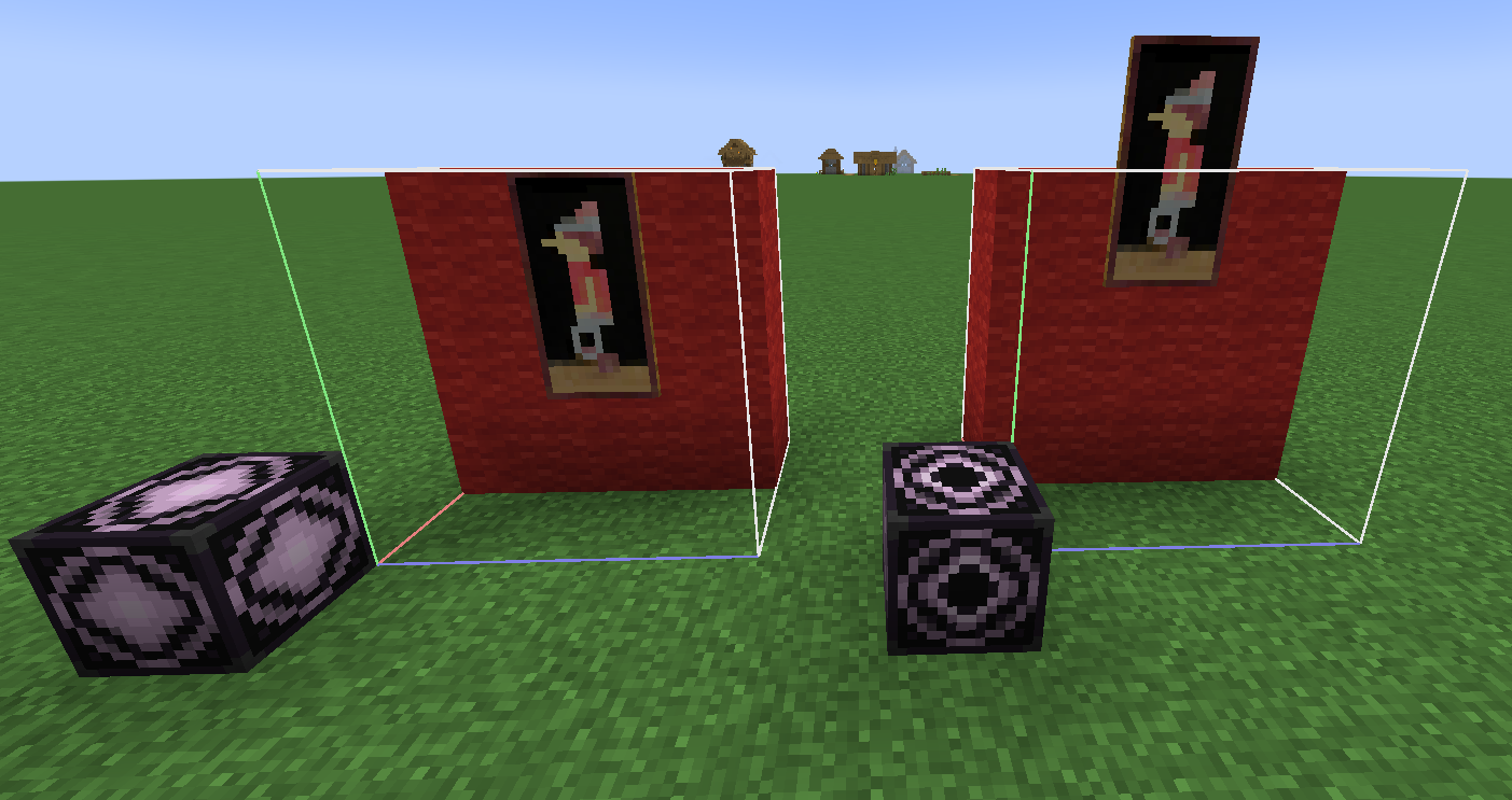 Using the Z-axis mirror (< >), you get the same results for paintings and items frames that you get without mirrors. Painting misplaced at 0 rotation and 270 rotation. Item Frames misplaced at 90 and 270 rotations.