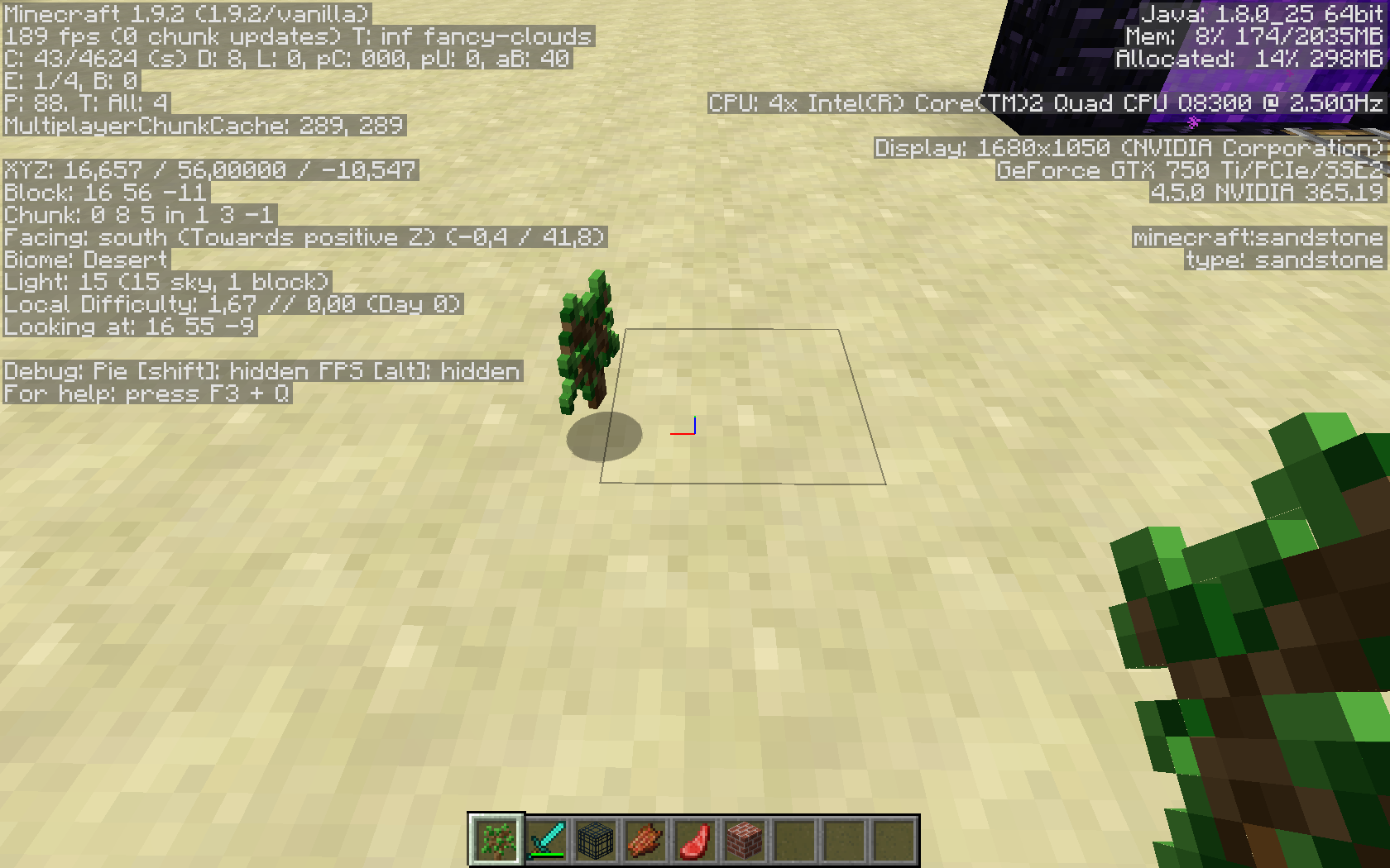 You can also briefly see it when you place it that there is pink on the sapling your holding. If you pause the game at just the right moment, you will clearly see that the side of the sapling is pink too, but when you look at it on the ground, it's totally normal... not to sure whats happening THERE! Besides that, love the 1.10 snapshot! Nice job with the game so far! BTW, I chose 1.9.2 because 1.9 didn't appear. Another bug! Make sure to fix that too!