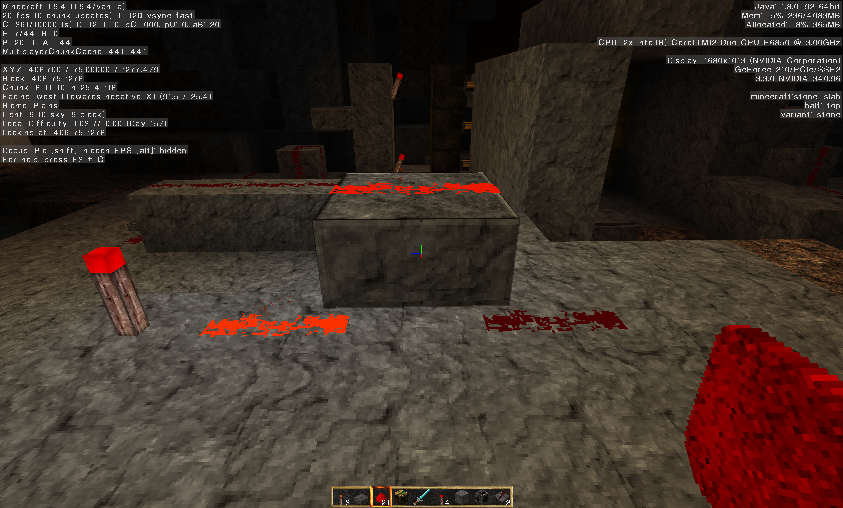 3. Place redstone next to the slab ( Behind and infront is a good example)