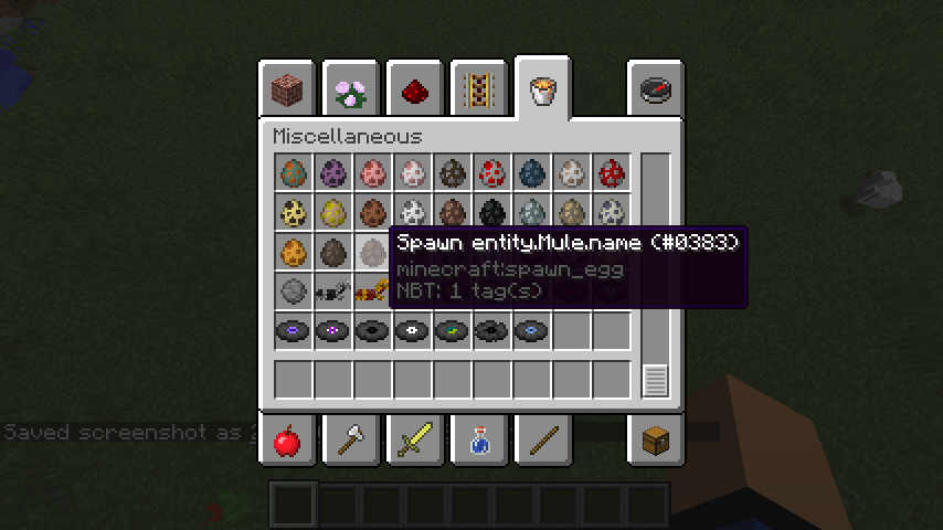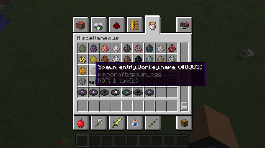 The spawn eggs for Donkey, Mule, Skeleton horse and Zombie horse are bugged